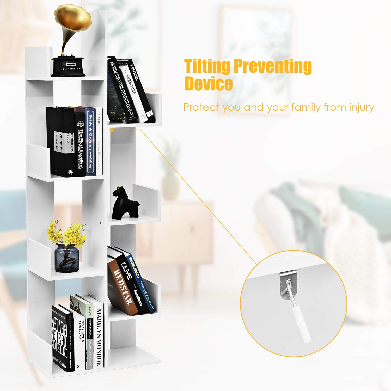 Tangkula 8 Shelf Bookshelf, Tree Bookcase with 8 Book Shelves, Freestanding Room Dividers, 57 x 20 x10 Inch, Display Storage Shelf for Books CDs Plants, Wooden Bookshelf for Home Office Decor