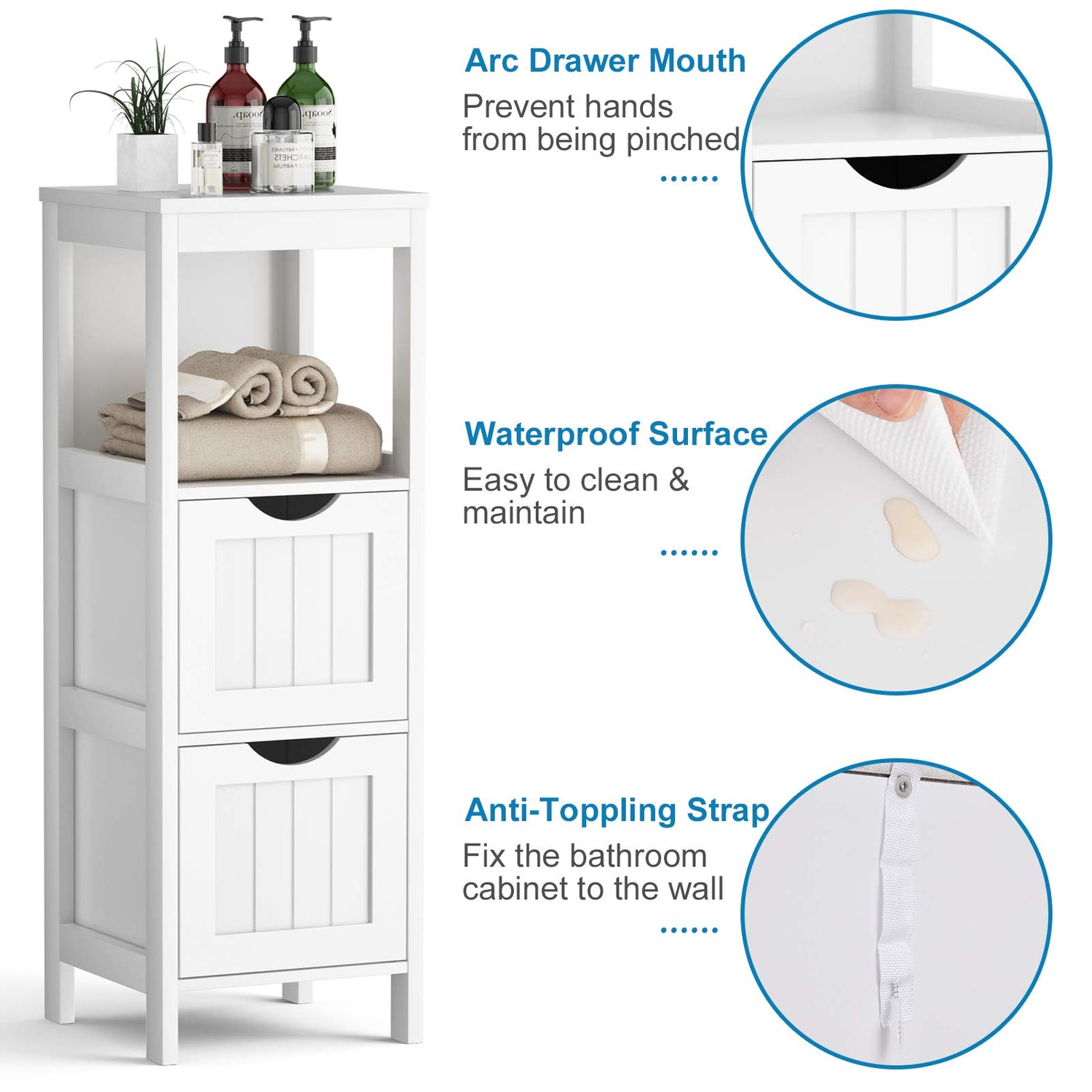 Tangkula Bathroom Floor Cabinet, Wooden Storage Cabinet w/2 Adjustable Drawers, Narrow Storage Floor Cabinet for Living Room Bathroom Office (White)