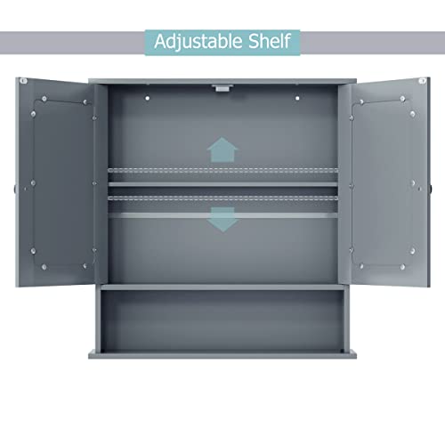 Tangkula Bathroom Medicine Cabinet with Mirror, Wall Mounted Wooden Hanging Organizer with Doors and Shelves, Bathroom Wall Mirror Cabinet (Mirror Doors, Gray)