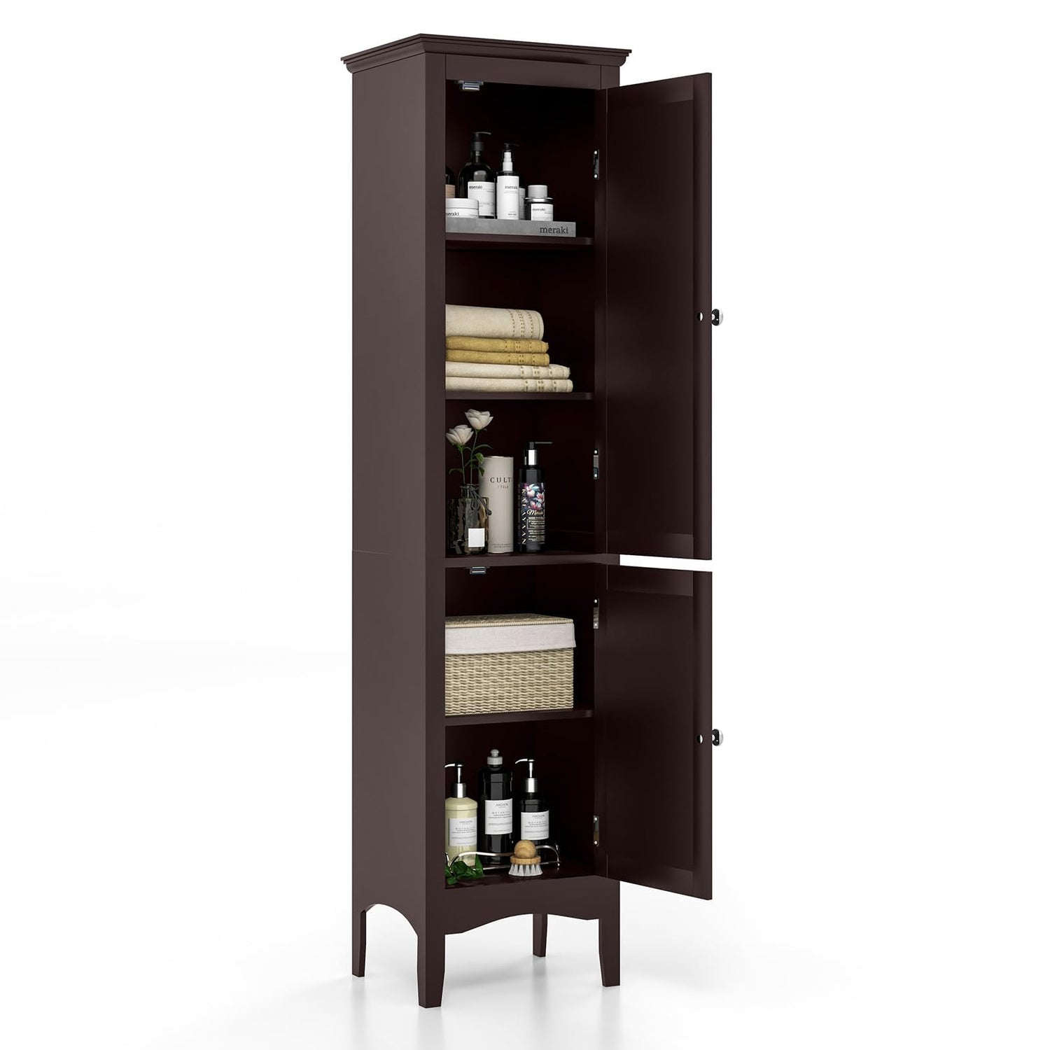 Transform your bathroom into an organized oasis with the Tangkula 63" Freestanding Slim Bathroom Storage Cabinet. This elegant cabinet, crafted in a sophisticated brown finish, offers both style and functionality while helping you reclaim valuable space in your home.