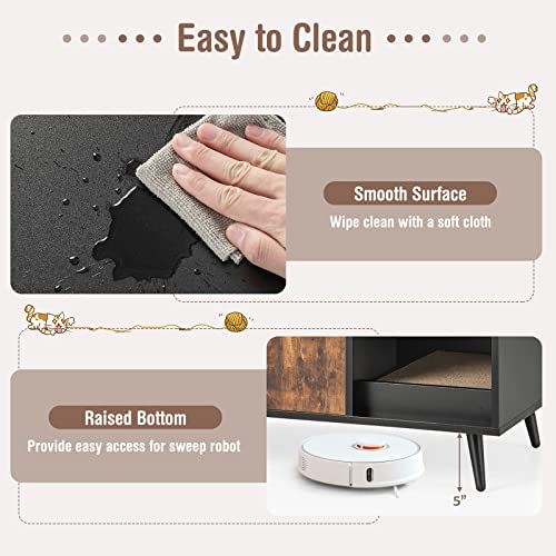 - Stable Structure & Easy Cleaning: Our cat litter furniture is made of engineered board with scratch-resistant veneer, durable and safe for pets to use. In addition, 4 solid metal legs are characterized by great sturdiness and durability, which can hold weight up to 210 lbs. The smooth surface can be easily wipe clean and the raised legs provide easy access for sweep robot.