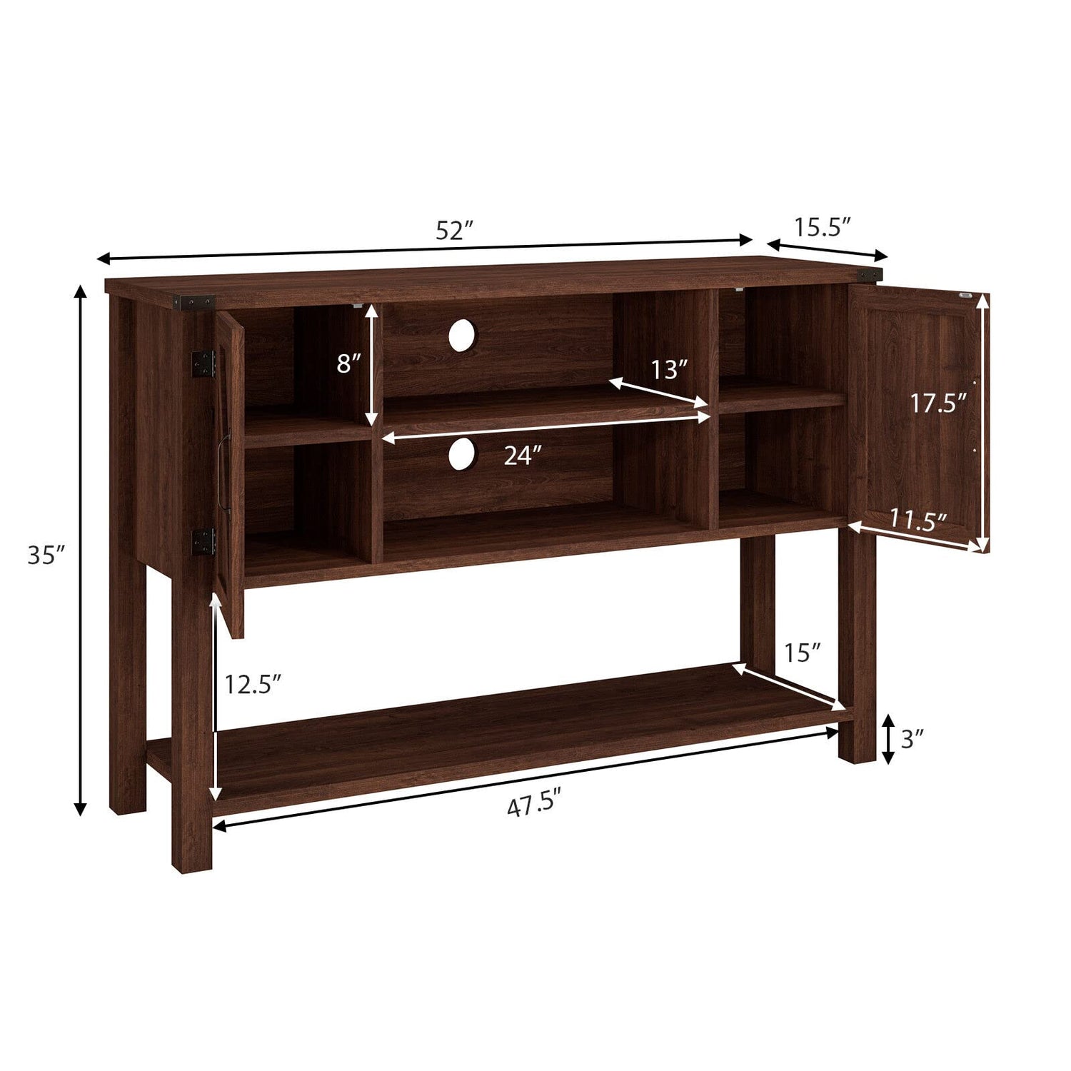- 【Modern Elegant Appearance】The concise rectangular console table in classic color designed with clean lines and smooth surface that presenting an elegant feeling. The barn-style side doors decorated with metal hinge and handle will match your other furniture and decorative style of interior space.