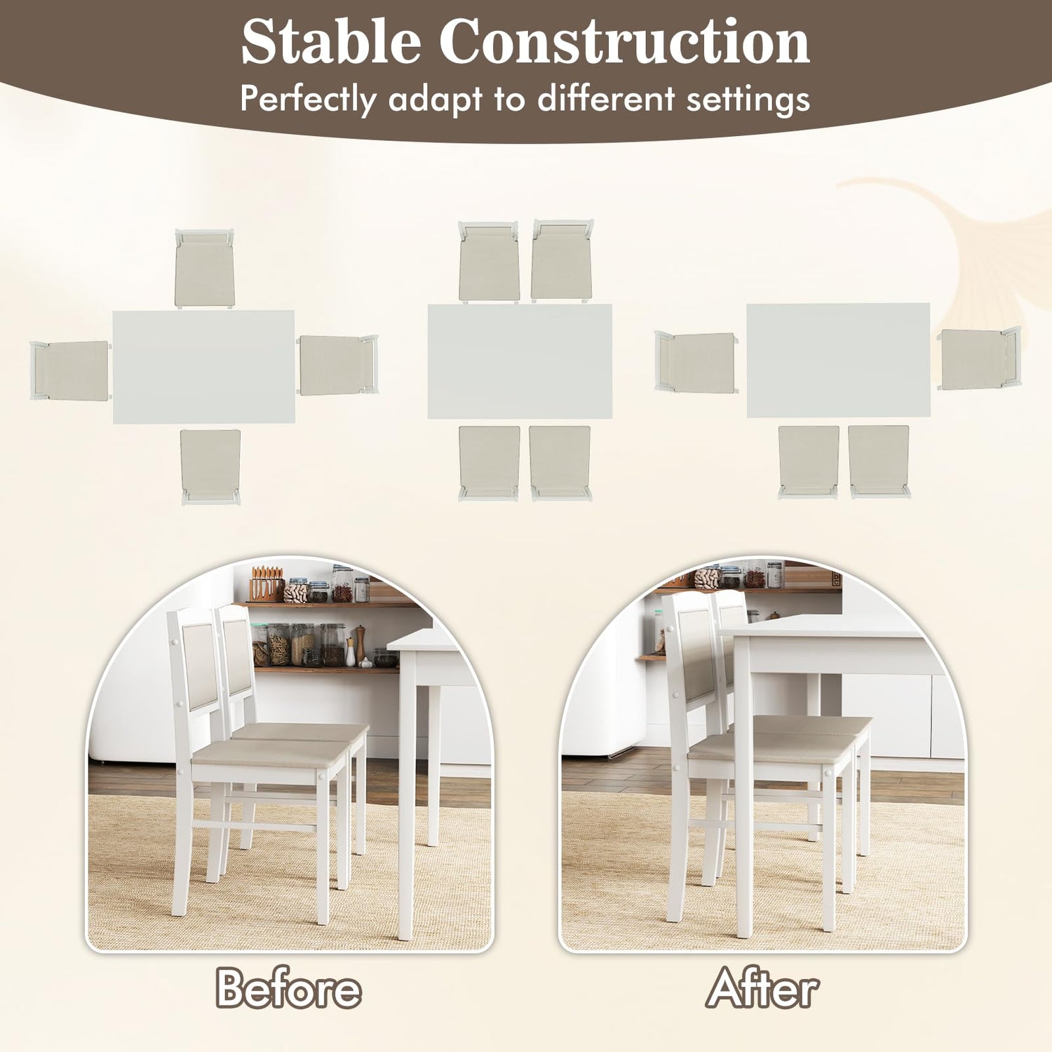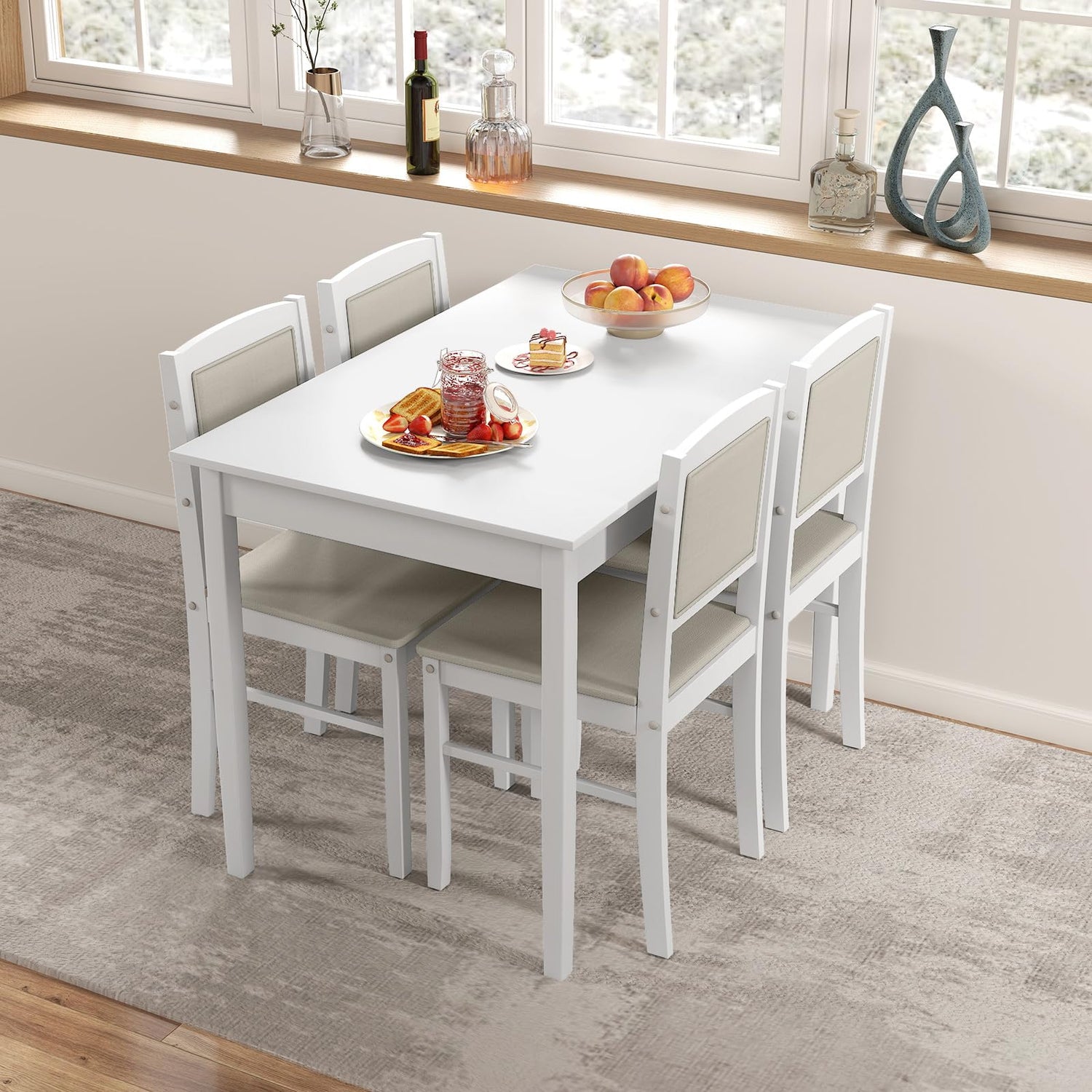 Tangkula Dining Table Set for 4, Farmhouse Solid Wood Dinette Set w/Rubber Wood Legs, Upholstered Seat & Padded Backrest, Mid-Century Modern Dining Table and Chairs Set for Kitchen, Dining Room