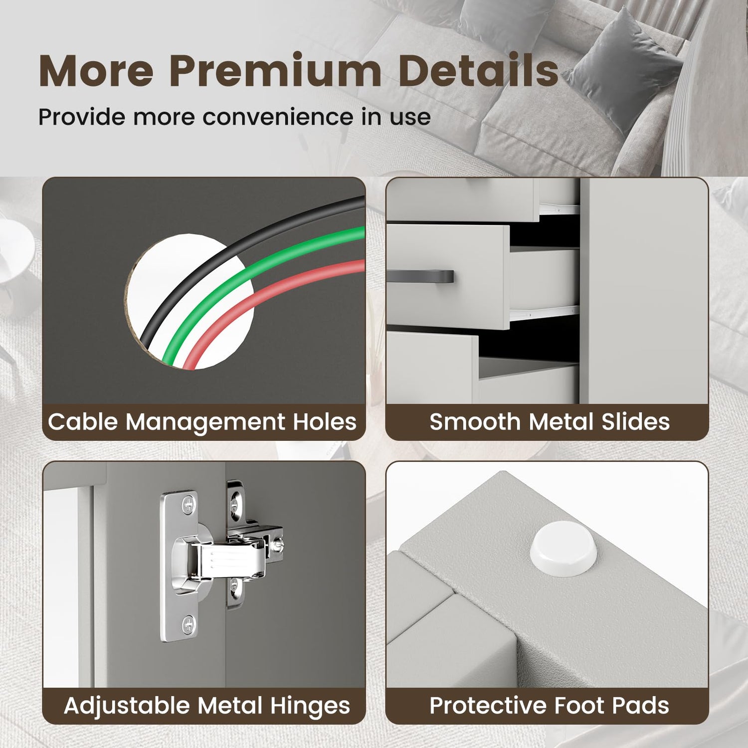 - More Premium Details: The entertainment center includes cable holes for efficient wire management. The metal hinges ensure perfectly aligned door gaps, while the protective foot pads prevent any scratches on your flooring.
