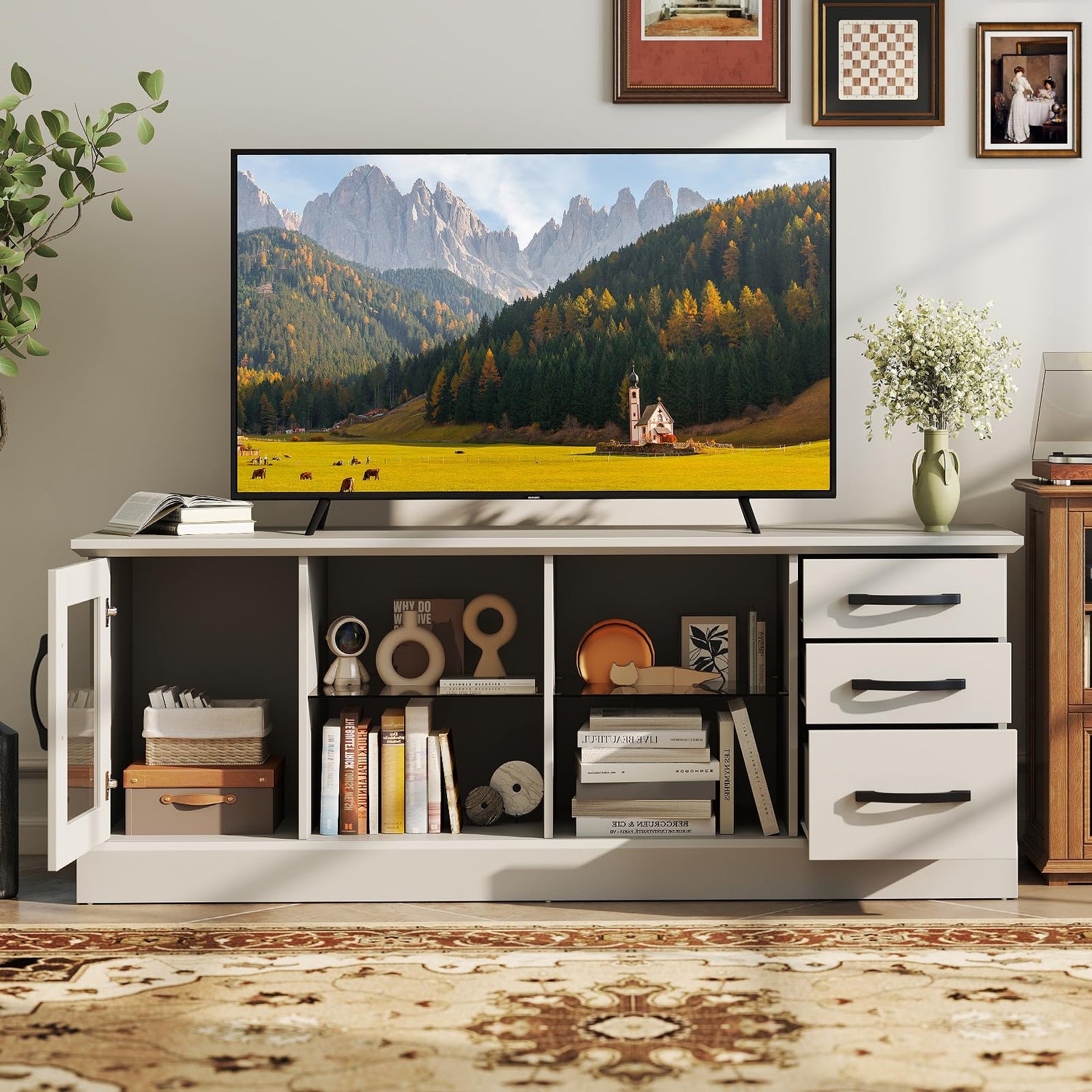 - Abundant Storage Options: The media console table features an enclosed cabinet, 3 drawers, and 2 glass shelves, catering to all your storage needs. Whether it’s media equipment, gaming consoles, or decorative items, everything has its place.