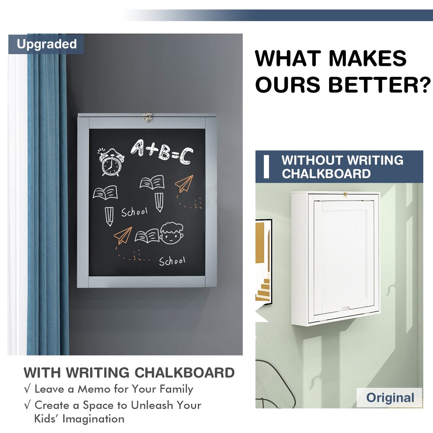 Tangkula Folding Wall Mounted Desk, Floating Desk with Chalkboard, Space Saving Fold Up Desk Wall Mounted Convertible Desk, Wall Mounted Table with Storage Shelves & Hooks