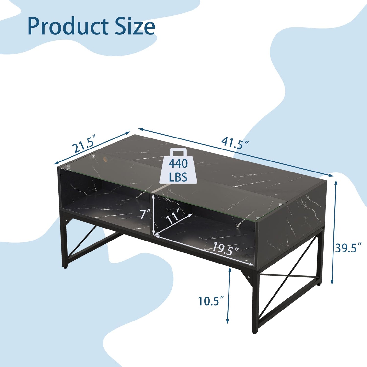 - Reinforced Structure: The tempered glass coffee table is supported by a heavy-duty metal frame, ensuring outstanding stability and durability. Besides, adjustable foot pads keep the table balanced on uneven floors.