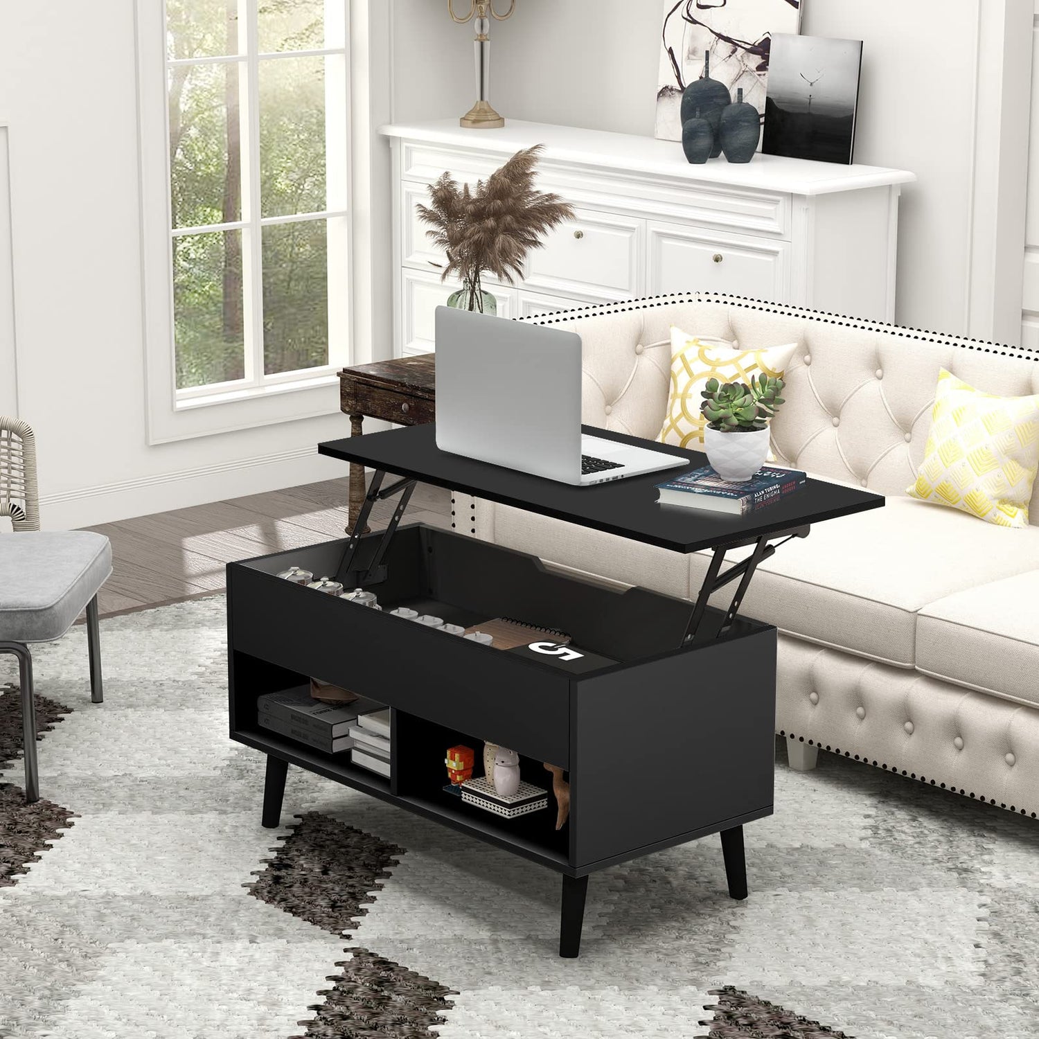 - Diversified Storage Space: Wide tabletop not only facilitates the placement of necessities, but also offers enough space for home office activities. Additionally, the lift top coffee table features a large hidden compartment and 2 open shelves that enlarge storage and display space for daily items.