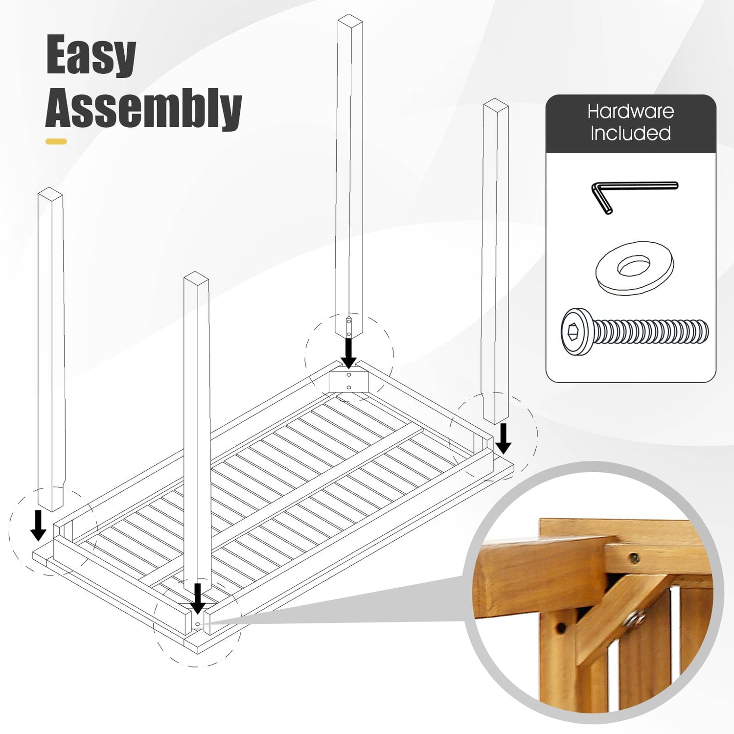 Hardware included for easy assembly
