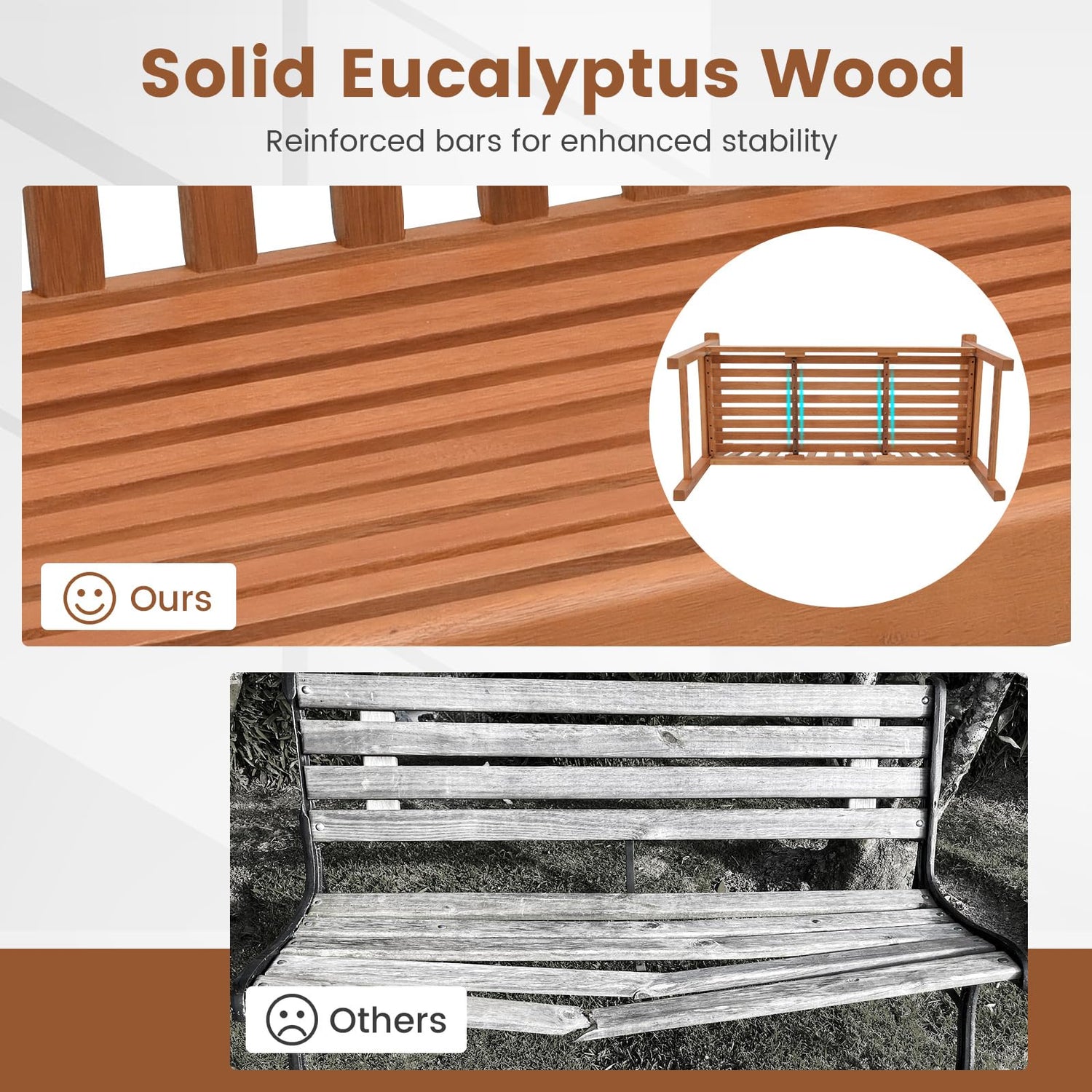 Elevate your outdoor living space with the Tangkula 2-Person Eucalyptus Outdoor Garden Bench, meticulously designed to offer both style and comfort. Crafted from high-quality solid eucalyptus wood, this garden bench is not only aesthetically pleasing but also incredibly durable, boasting a remarkable weight capacity of up to 800 lbs.
