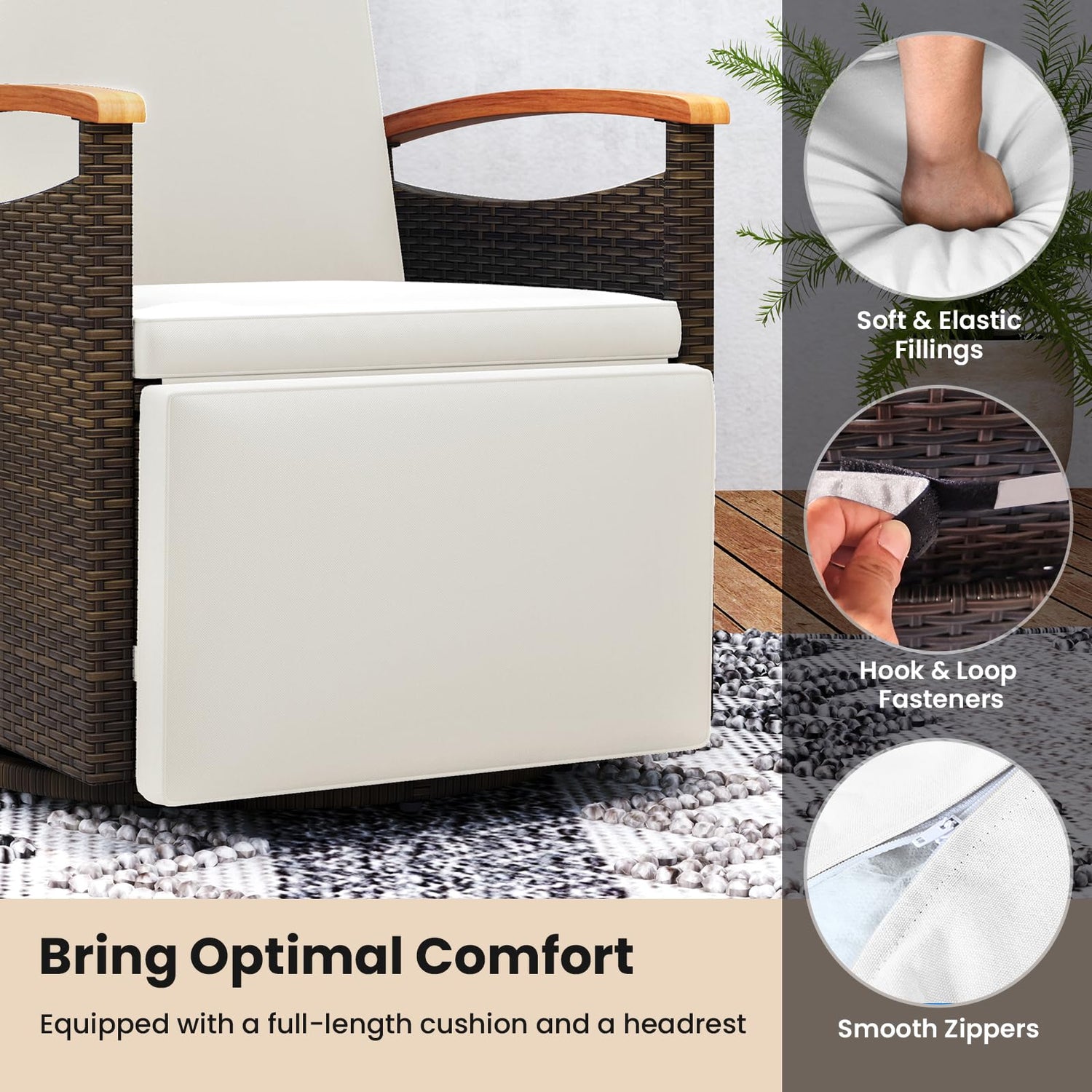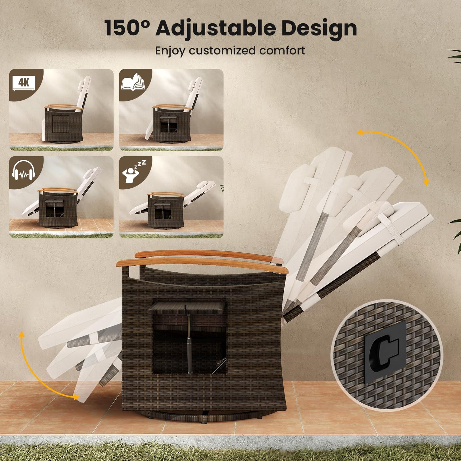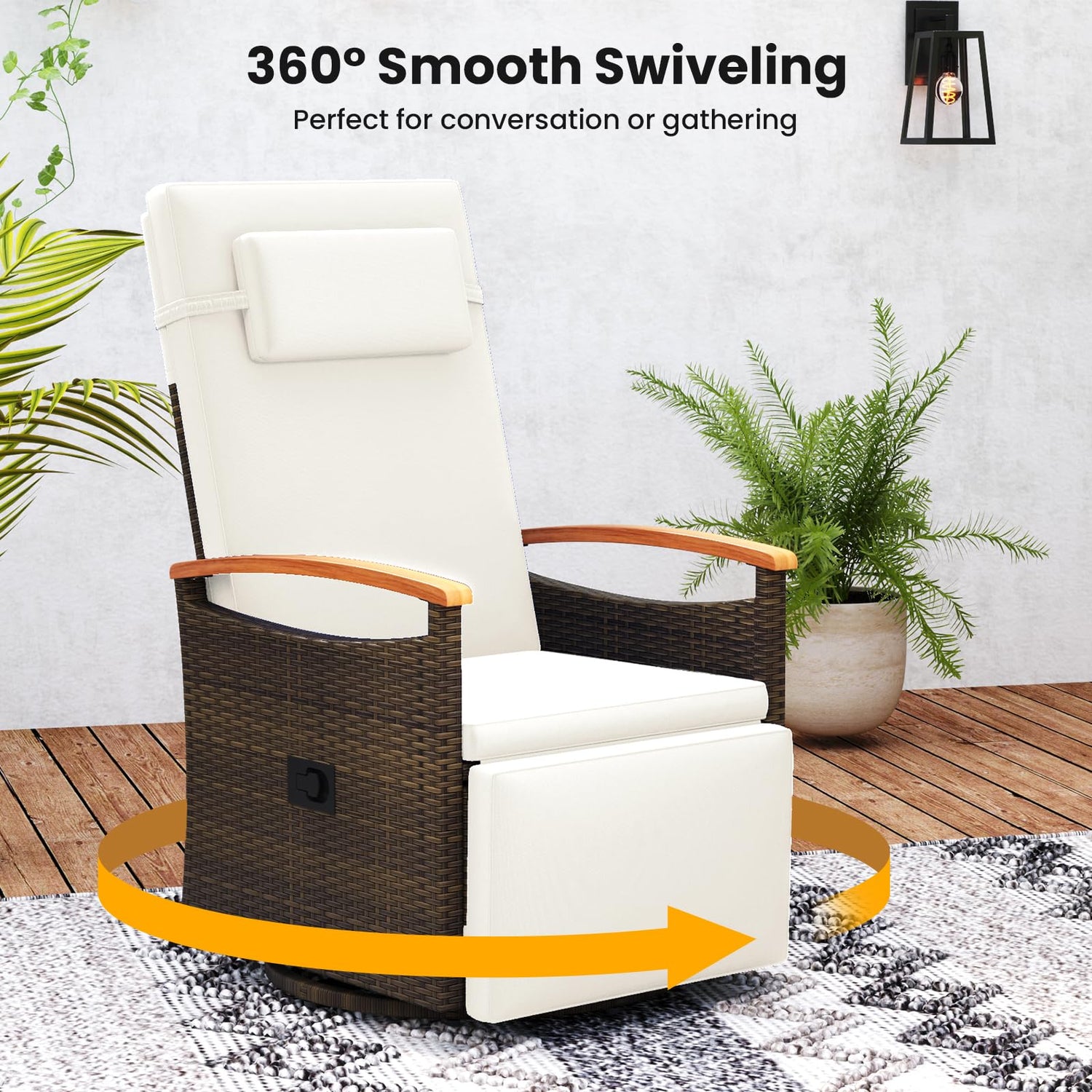 Tangkula Patio Rattan 360 Degree Swivel Recliner Chair, Wicker Lounge Chair w/Adjustable Backrest & Footrest, Cushioned Push Back Reclining Seat w/Flip Side Table for Porch, Yard, Lawn (Off White,1)