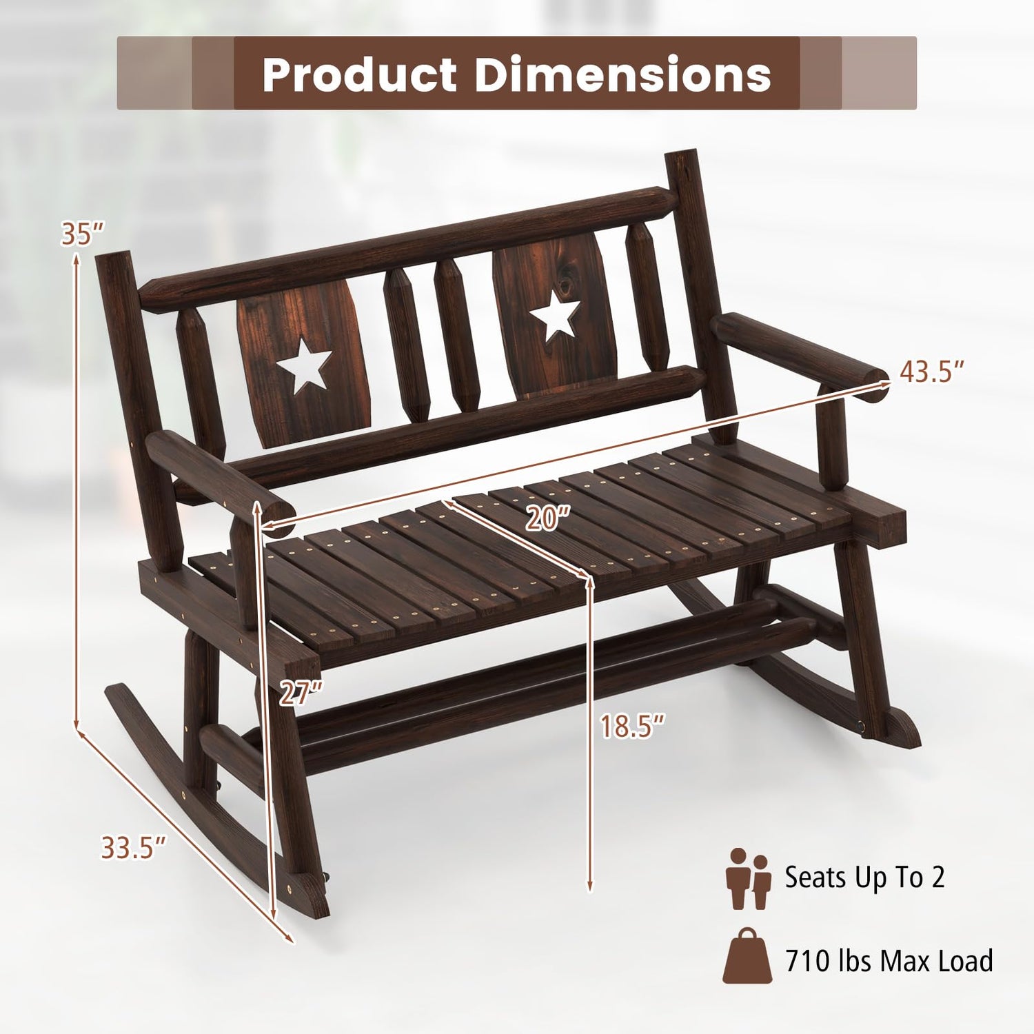 Tangkula Rustic Brown Double Rocking Loveseat for Outdoor Relaxation