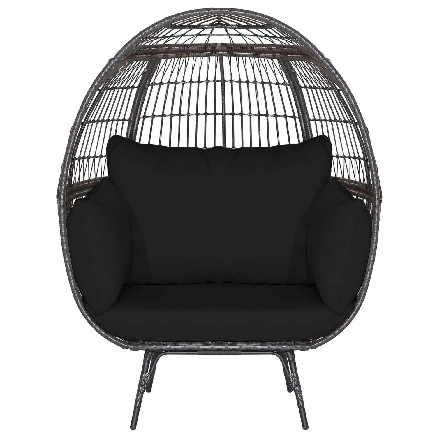 Tangkula PE Wicker Egg Chair, Patiojoy Oversized Indoor Outdoor Patio Lounge Chair with Cushions and Pillows, Steel Frame Basket Chair for Garden, Deck, Balcony, Living Room (Black)