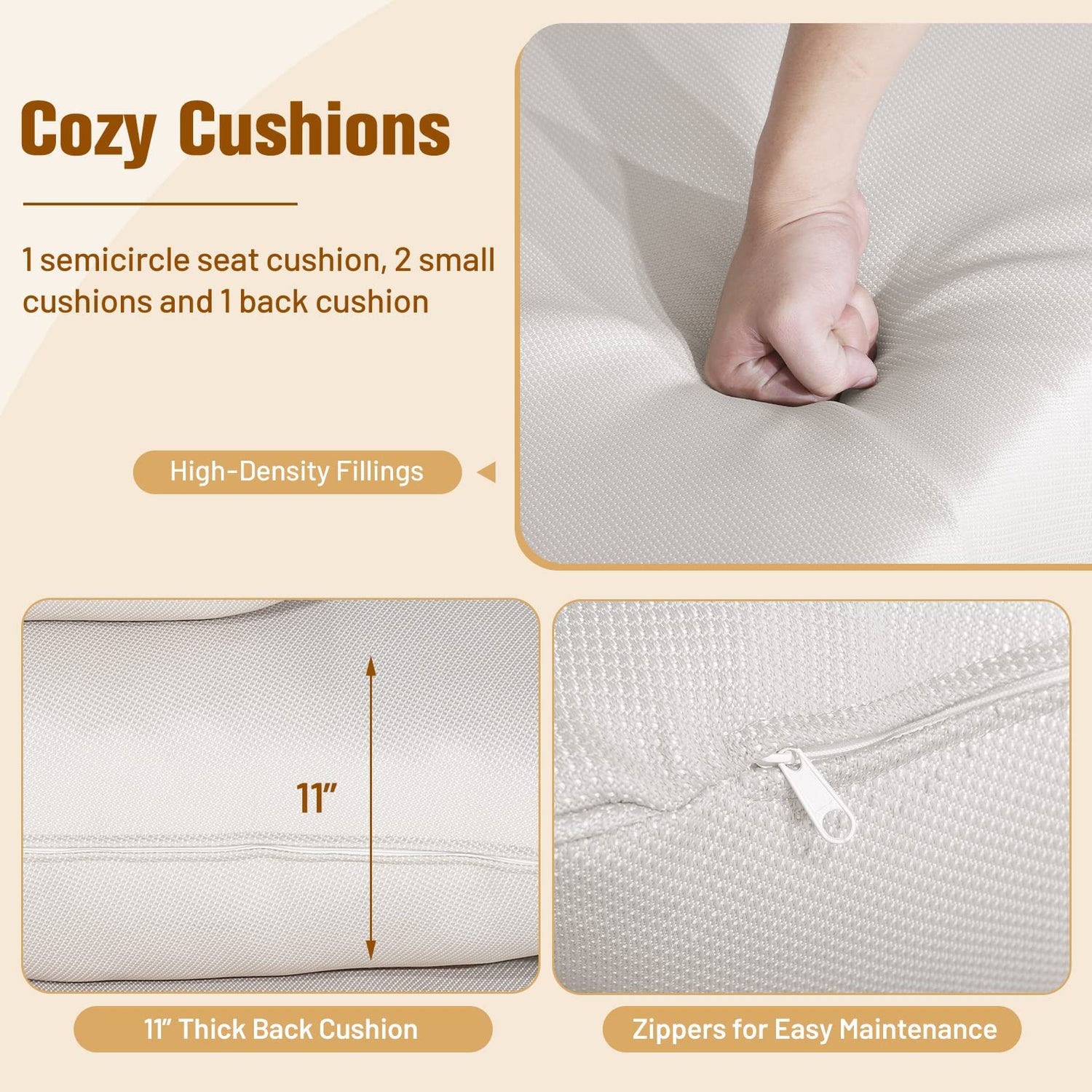 - Cozy Cushions for More Comfort: Equipped with 1 semicircle seat cushions, 2 small cushions and 1 back cushion with high-density fillings, the seat of this rattan egg chair is much cozier and softer to sit. Plus, zippers for easy maintenance and removal of cushion covers offer more convenience to you.