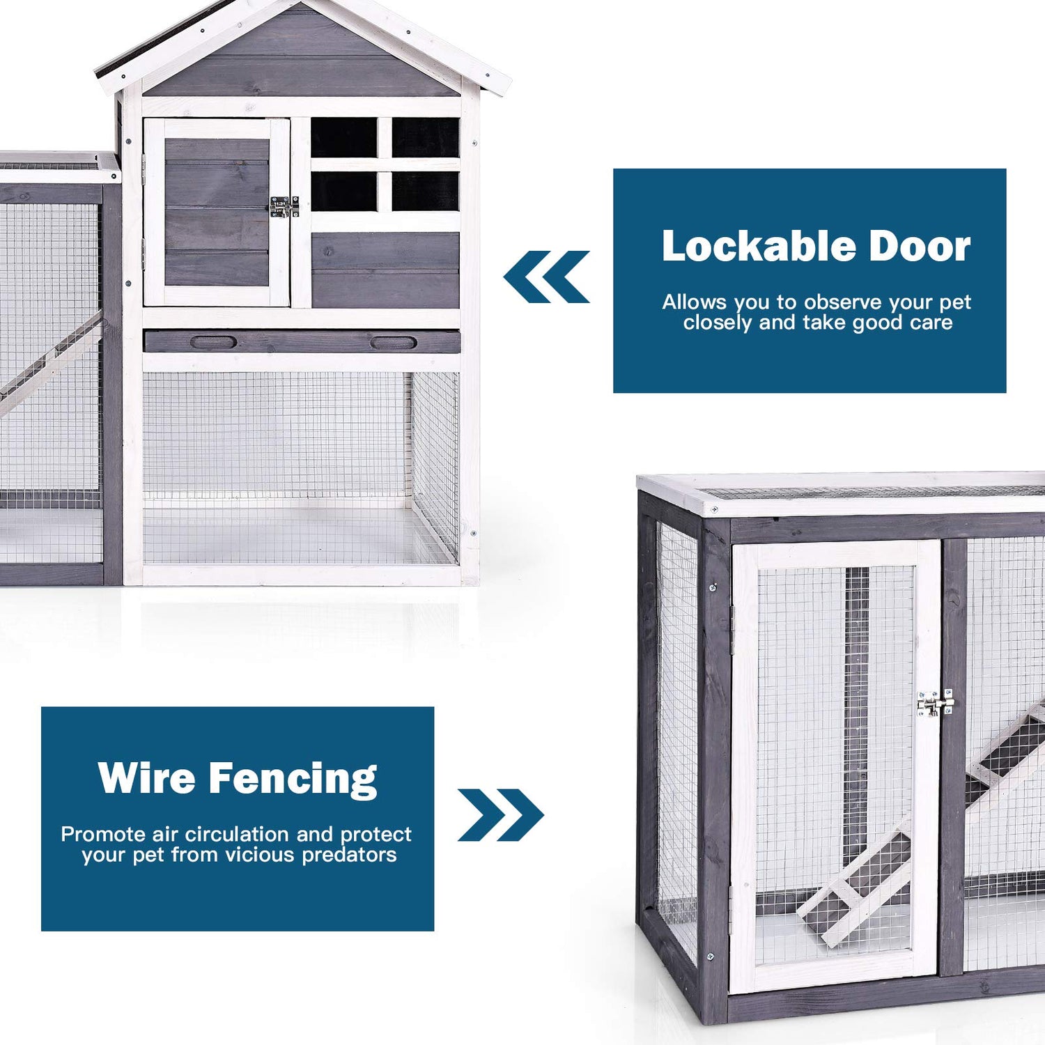 Tangkula Rabbit Hutch, Indoor Outdoor Bunny Cage with Run, Wooden Rabbit Cage with Waterproof Roof & Pull Out Tray, Chicken Coop Pet House for Rabbits, Chicken and Guinea Pigs (Gray)