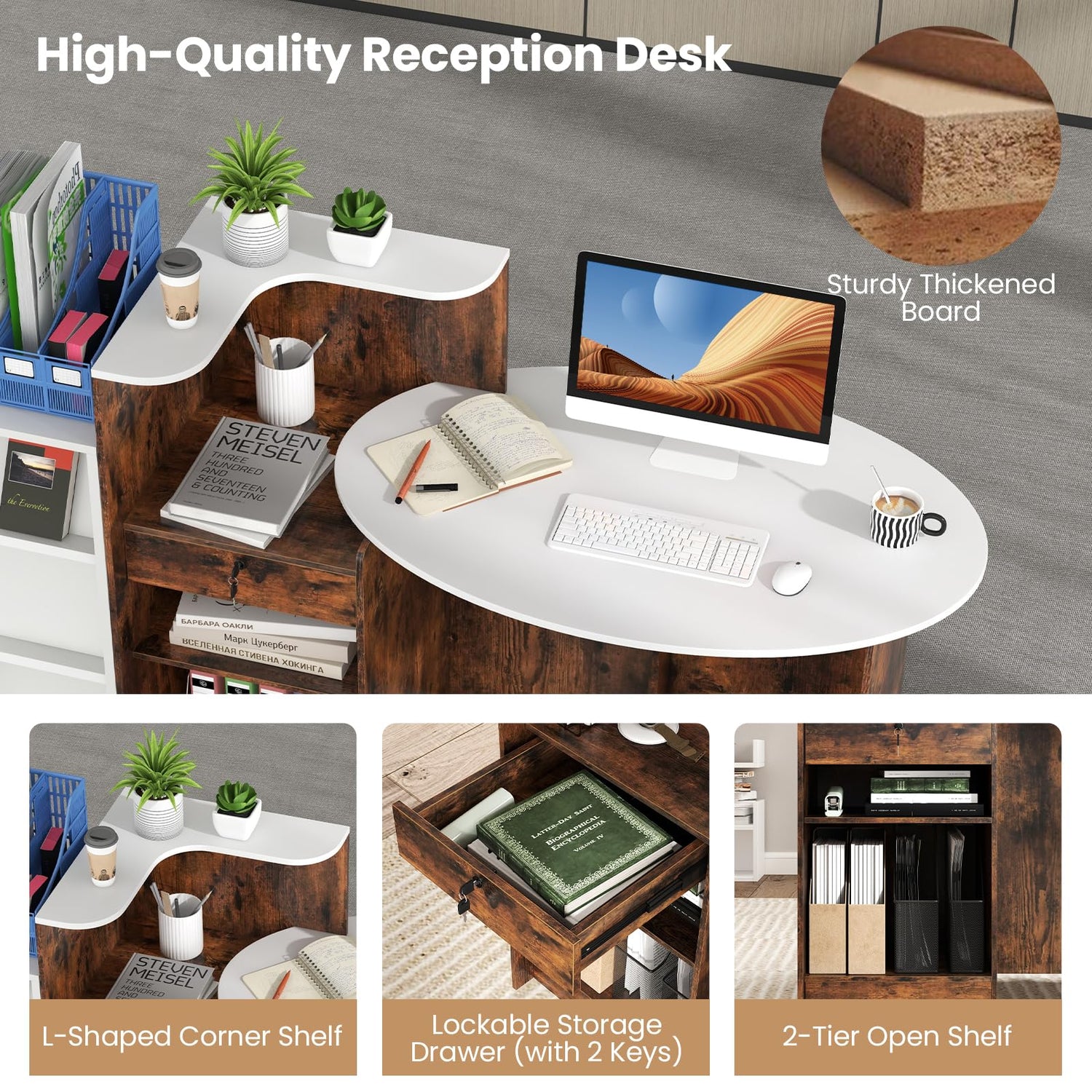Tangkula Reception Desk, Front Counter Desk with Lockable Drawers, L Shaped Retail Counter with Oval Desktop, Checkout Computer Workstation for Salon Lobby Home Office