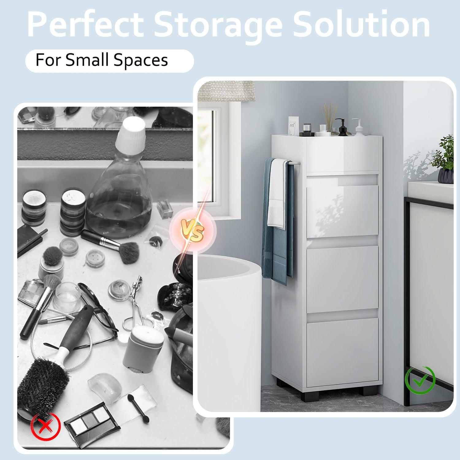 Utilize every corner of your small space efficiently with this bathroom floor cabinet.