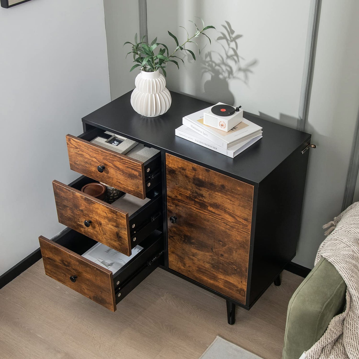 Tangkula Storage Cabinet with 3 Drawers and Door Cabinet, Industrial Wood Accent Cabinet with Adjustable Shelf, Retro Farmhouse Sideboard Buffet Cabinet for Kitchen Living Room (Industrial)