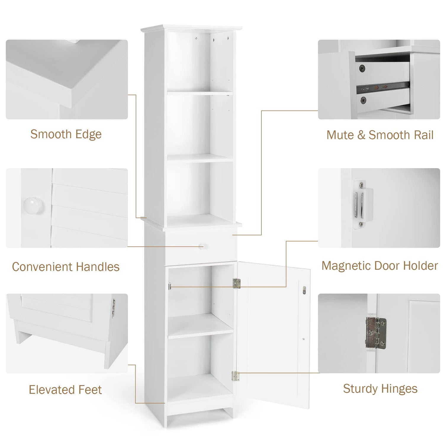 Tangkula Tall Bathroom Cabinet, Slim Storage Cabinet w/ 3 Tier Shelf, Drawer & Enclosed Cabinet, Adjustable Shelves, Narrow Floor Linen Tower for Bathroom Living Room, 13.5 x 12 x 64.5 Inch