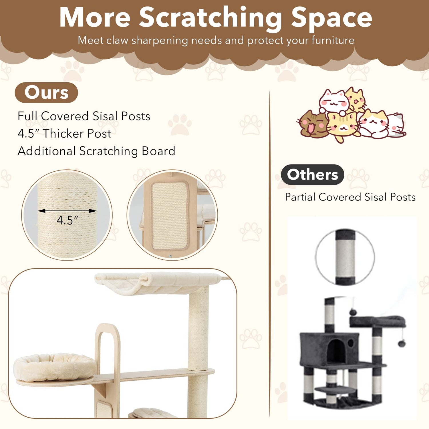 - 【More Scratching Space:】Compared with others using partial covered sisal posts, ours with full covered sisal posts can meet claw sharpening needs and protect your furniture better. Besides, there is an additional scratching board at the side.