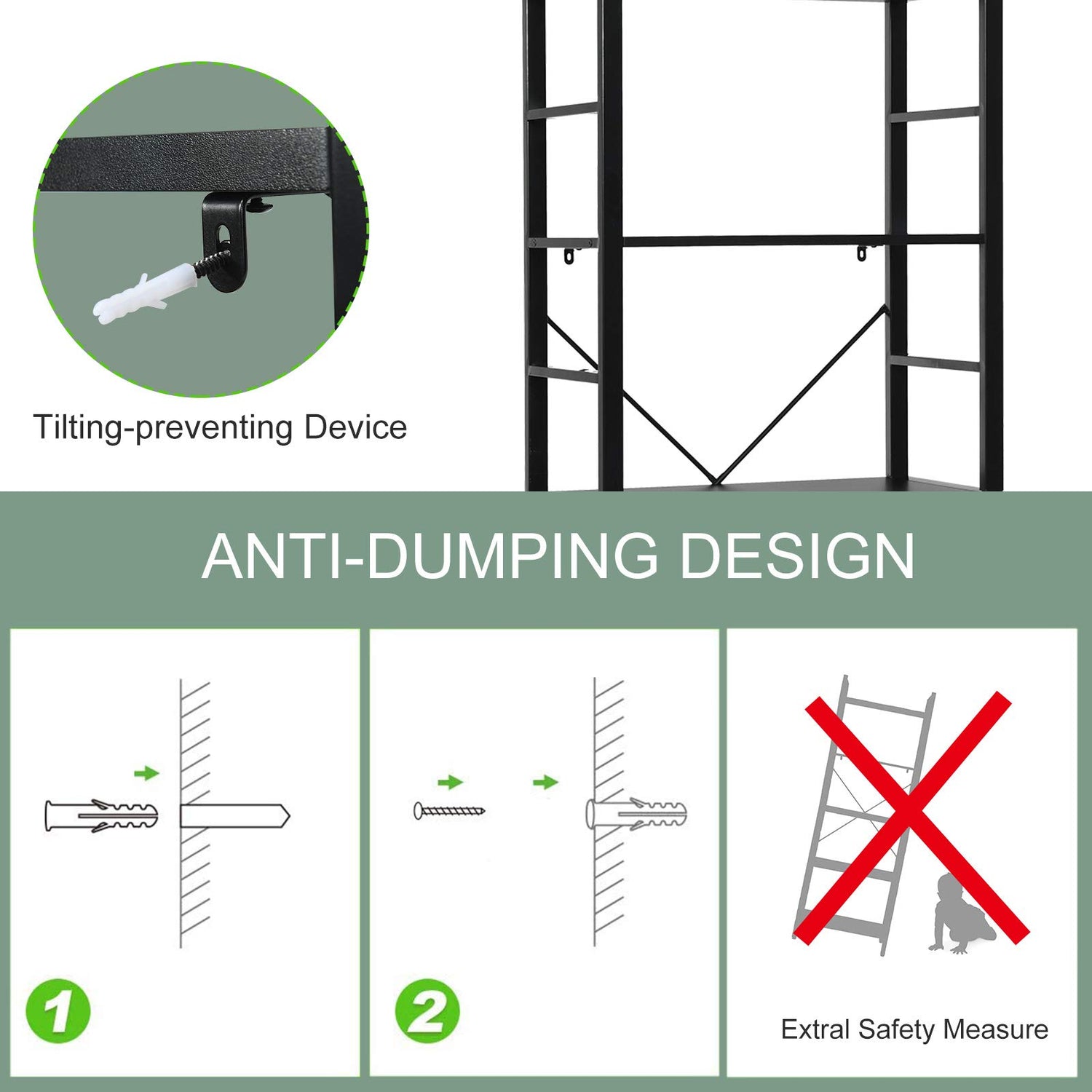 - 【Safe & Practical Rack】Designed with adjustable bottom feet, the bookcase will accommodate for uneven ground. And the anti-toppling device prevents it from accidentally tipping over. Besides, this multifunctional shelf can be used as a bookcase, display platform and storage shelf.