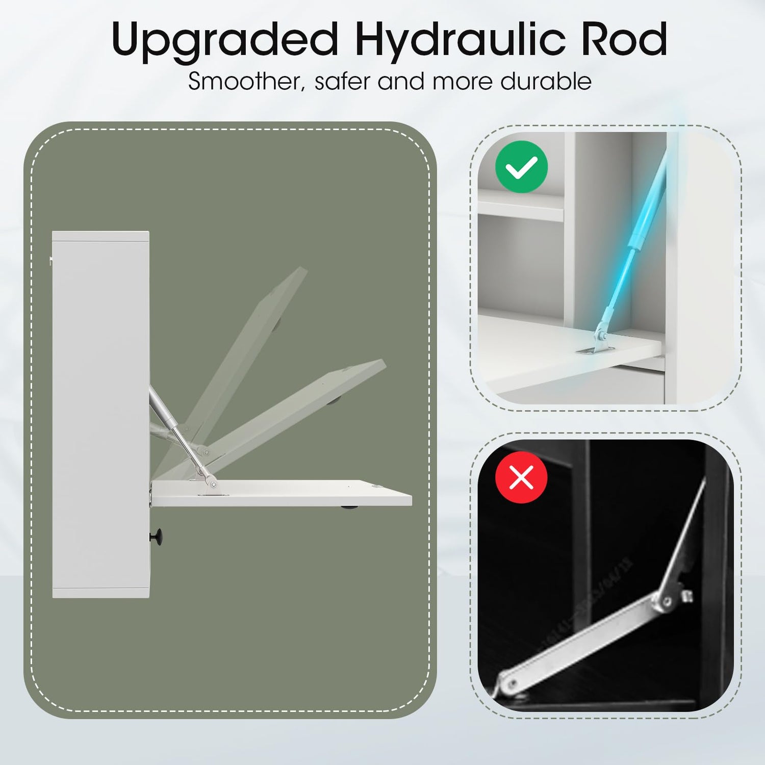 - Space-saving Fold-down Table: The wall desk can be folded up to save space and folded down to serve as a spacious worktop. Besides, it features upgraded hydraulic rod that is smoother, safer and more durable than normal struts.