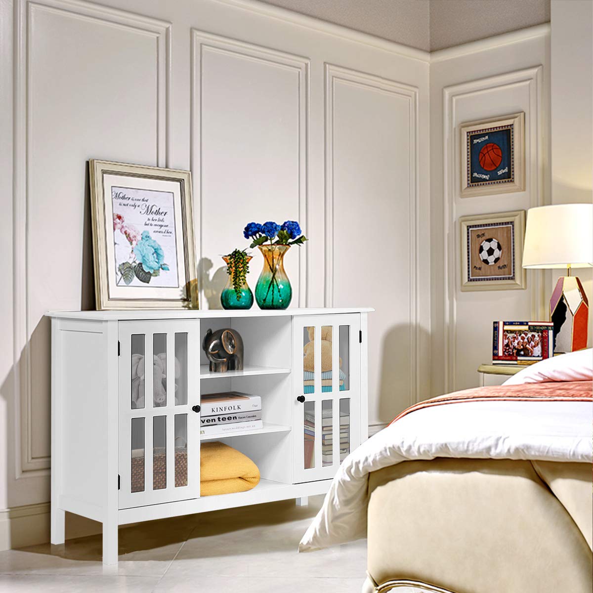 - đăSimple and Beautiful DesignăThe Tangkula TV Stand has a simple and stylish design. Simple stylish design comes in elegant white finish, is functional and suitable for any room. meanwhile to add a modern feeling to your home. In addition you can also put some green small plants on the top and open shelves to make your item neat and beautiful. It is a ideal option for you.
