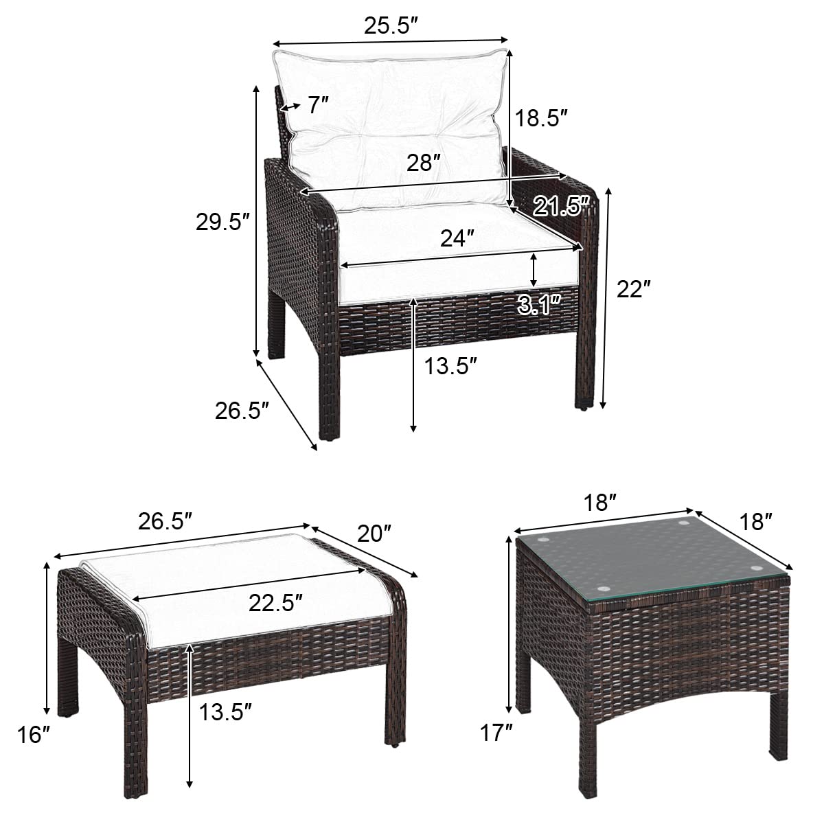 - 【Luxurious Style & Upgrade Comfort】 The conversation set includes 2 single sofas, 2 ottomans and 1 coffee table. The set provides relaxation for 2-4 people. 3.1” thickness cushions will offer comfortable experience.