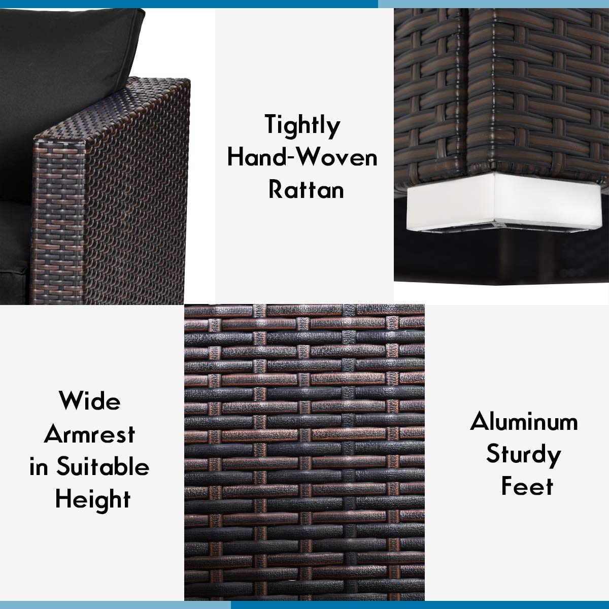 - Stable Frame & Hand-woven Rattan: Made of heavy-duty steel and weather-resistant PE rattan, the corner sofa has the advantages of high tensile strength, long service life and so on. Plus, the load capacity of sofa is also improved with sturdy frame.