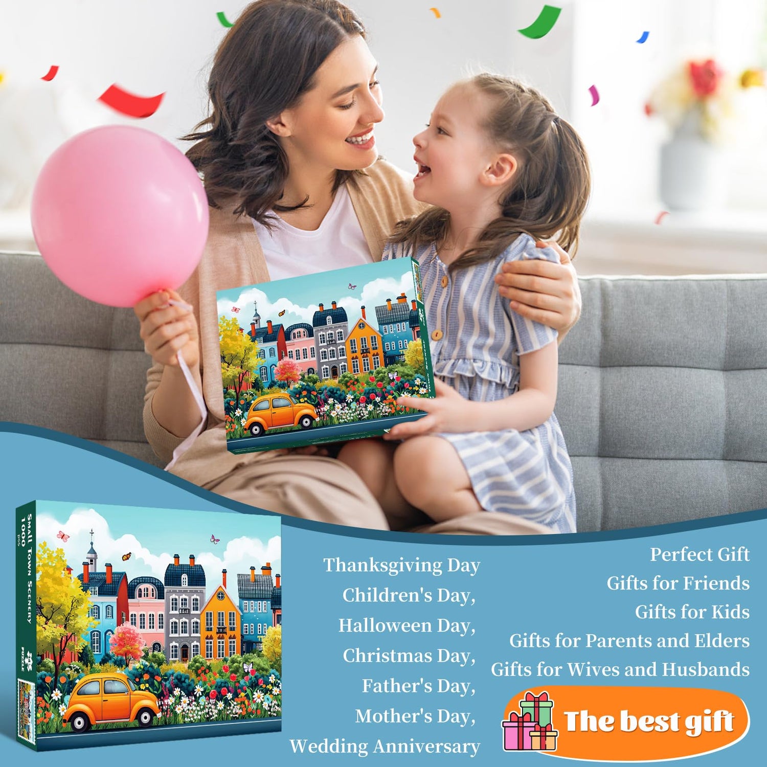 - Surprising Gift: This adult version 1000 pieces puzzle is a perfect gift, a great gift for various occasions such as Christmas, Thanksgiving, Valentine's Day, anniversary, holiday gifts or housewarming parties or even a fun night with friends. Suitable for you to give to parents, children, classmates, friends, family, couples