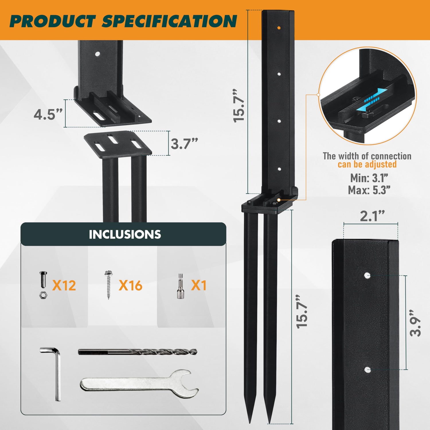- 🔩 ADJUSTABLE WIDTH CONNECTION : This innovative feature allows the TANIVO Fence Post Anchor Kit to adjust its width from 3.2 to 5.3 inches. This adjustability is particularly beneficial when installing the anchor around concrete foundations, as it prevents the anchor from getting entangled. This ensures a smooth and hassle-free installation process, making it easier to secure the anchor firmly in place without any complications.