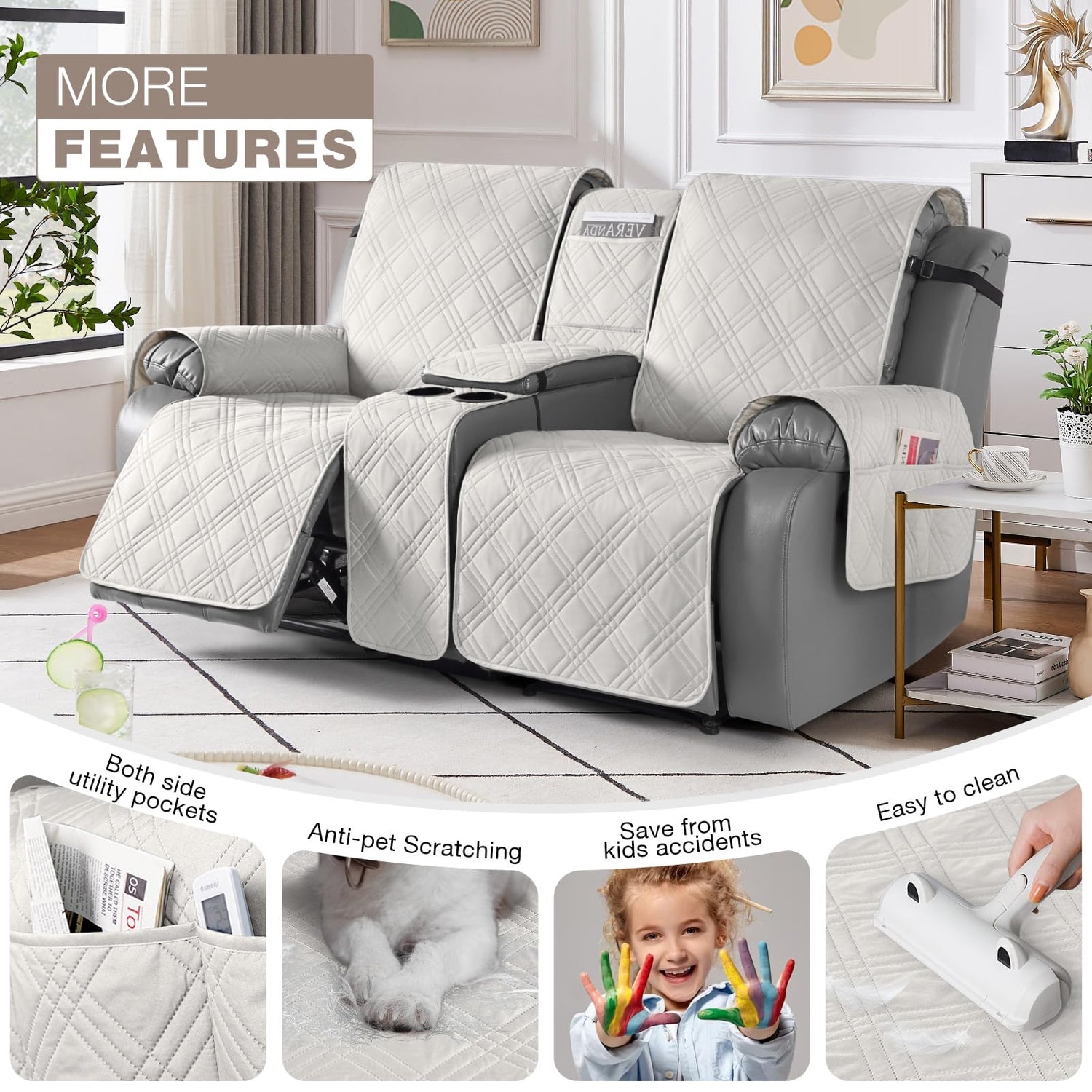- 【HIGH QUALITY MATERIAL】TAOCOCO reclining loveseat covers are made of choiceness material, quilted from 5 layers of durable fabric, and the inner-layer is filled with soft texture fabric to make it more comfortable, soft, durable and strong, it would be a great choice for homes with kids and pets