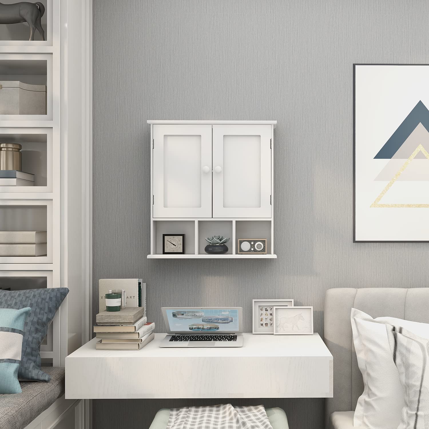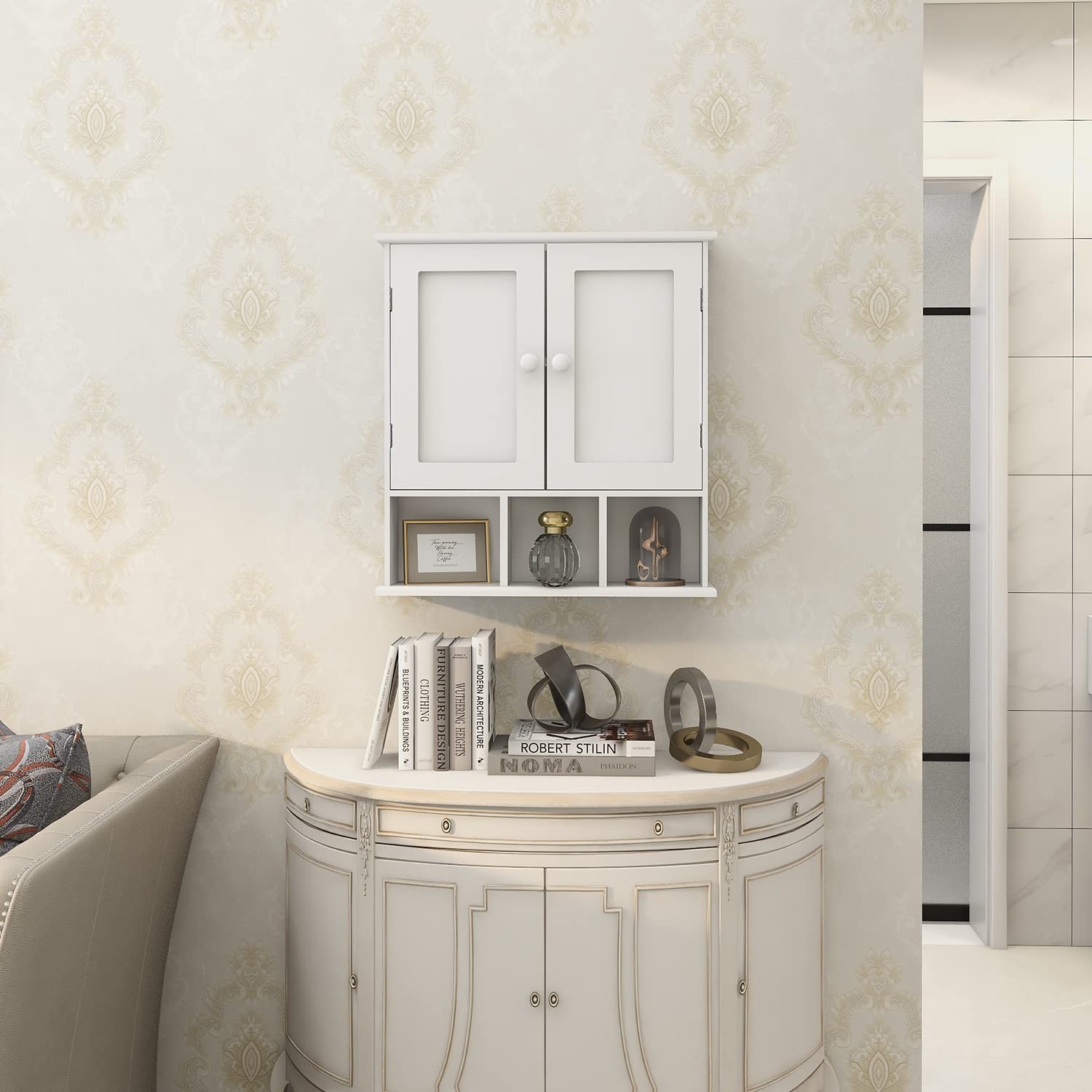 TaoHFE Bathroom Wall Cabinet with 2 Door Adjustable Shelves,Over The Toilet Storage White Wall Mounted Medicine Cabinets for Bathroom Laundry Room Kitchen