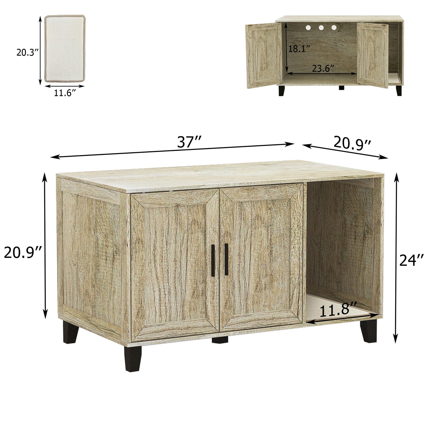 TaoHFE Hidden Cat Litter Box Enclosure Furniture with Cats Scratch Pad Farmhouse Enclosed Cat Litter Boxes Cabinet Furniture with Doors Wooden Indoor Cats Box House,Oak