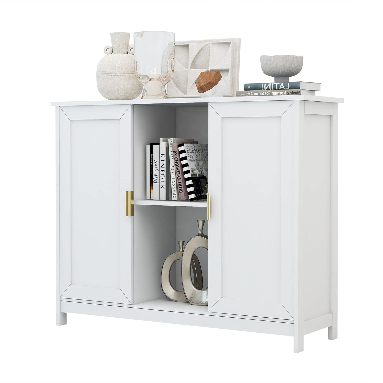 - Multifunctional Applications -This multifunctional storage sideboard with 2 doors and 2 open shelves. The floor cabinet decorates your room while helping you save space favorably. This storage cabinet can store fruits and vegetables, food, books, plants, vases and others.The white cabinet makes your room look more stylish and elegant.