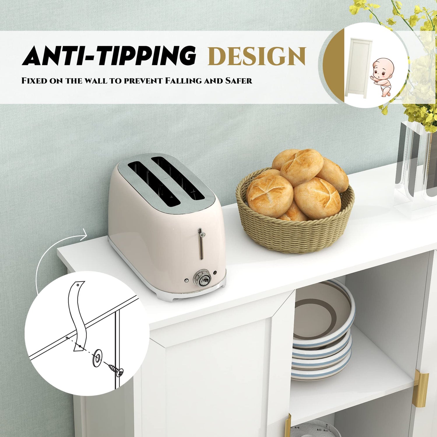 - Quality Materials -This coffee bar is made of E1 grade MDF, which is environmentally friendly, scratch-resistant and water-resistant.Its wooden makes it more stable overall.The doors are equipped with a magnetic device.In addition,there are square metal door handles to make opening and closing the doors easier and more convenient.For the safety, the bathroom floor cabinet also has an anti-tipping design.It is fixed to the wall to prevent it from being pushed over,and it is safer.