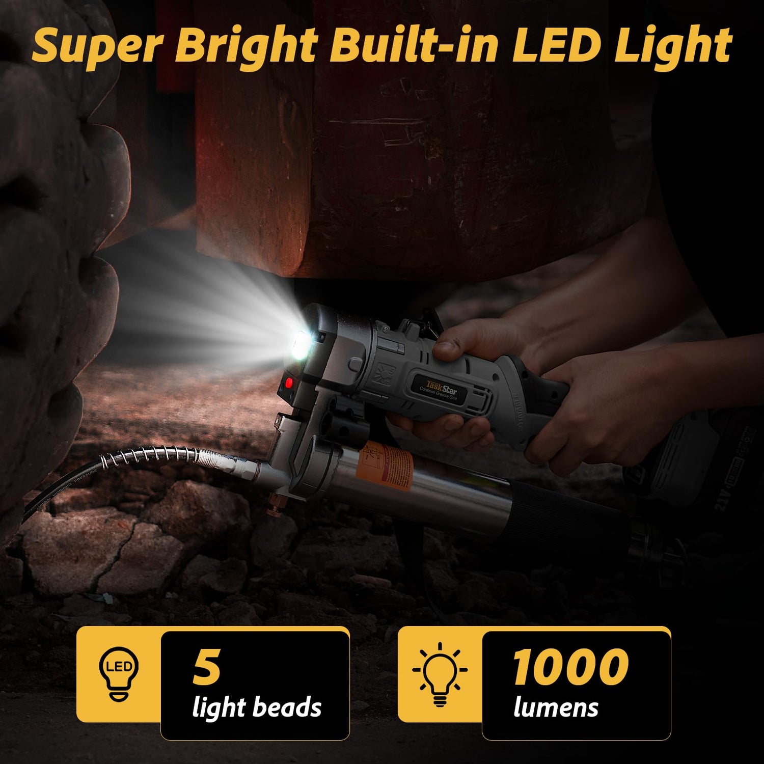 TaskStar Grease Gun, 2-in-1 Easy-to-Use Battery Grease Gun Kit with 2 * 4000mAh Batteries, Efficient Cordless Grease Gun with 90 Degree Coupler Adapter, Electric Grease Gun with LED Light, Gray