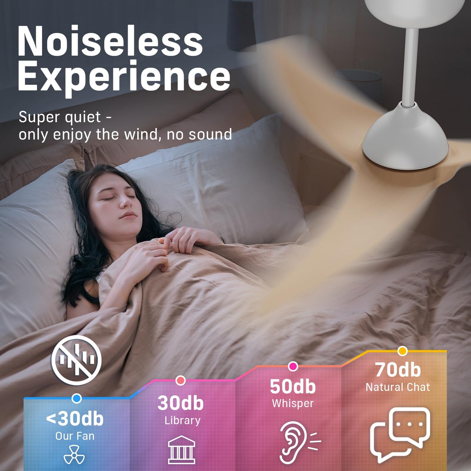 - ใ๐๐จ๐ข๐ฌ๐-๐๐ซ๐๐ ๐๐ฑ๐ฉ๐๐ซ๐ข๐๐ง๐๐ใ: This bedroom ceiling fan is designed for light sleepers, brings you comfortable sleeping with a quiet living environment. The volume is low to 35dB when the fan is running, like the sound of falling leaves, or like a butterfly flaps its wings(30dB). It is more suitable for families with babies or elders. Super quiet, only wind.