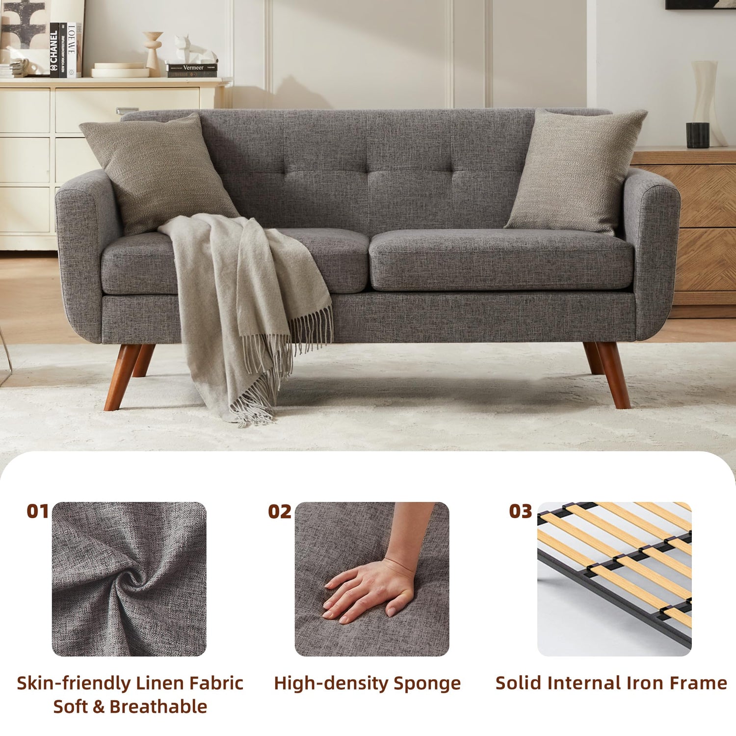 • TIMELESS APPEAL: Stylish tufted linen upholstery with a mid-century low-profile design brightens your whole home with modern craftsmanship and classic aesthetics. The small loveseat provides stylish and functional furniture for your apartment, adding more features to your home while decorating the room.
