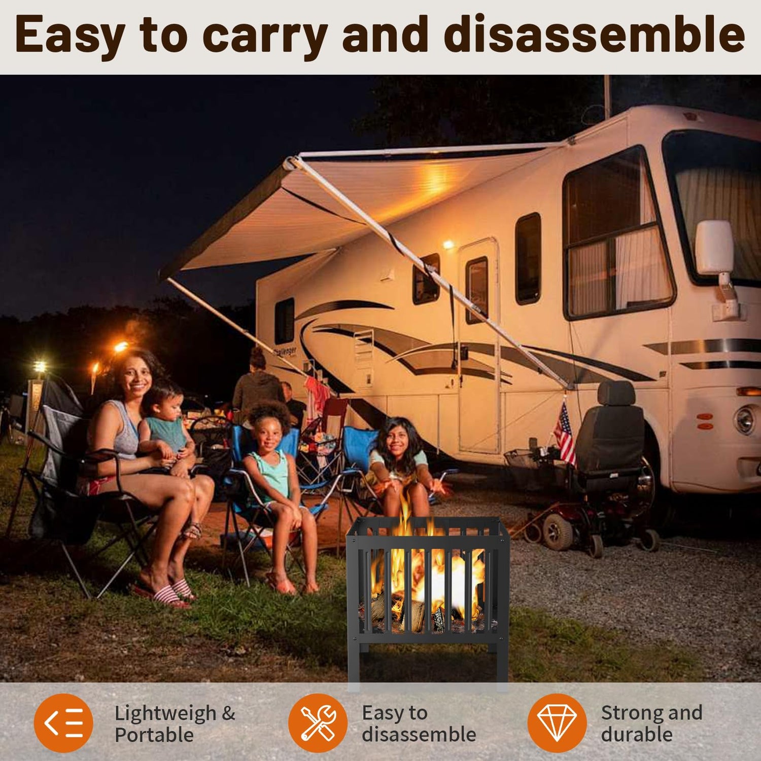 - Versatile Use: Perfect for roasting marshmallows, warming up on chilly nights, or simply enjoying the mesmerizing flames, this fire pit is a versatile addition to any outdoor activity, from casual family gatherings to lively bonfire parties.