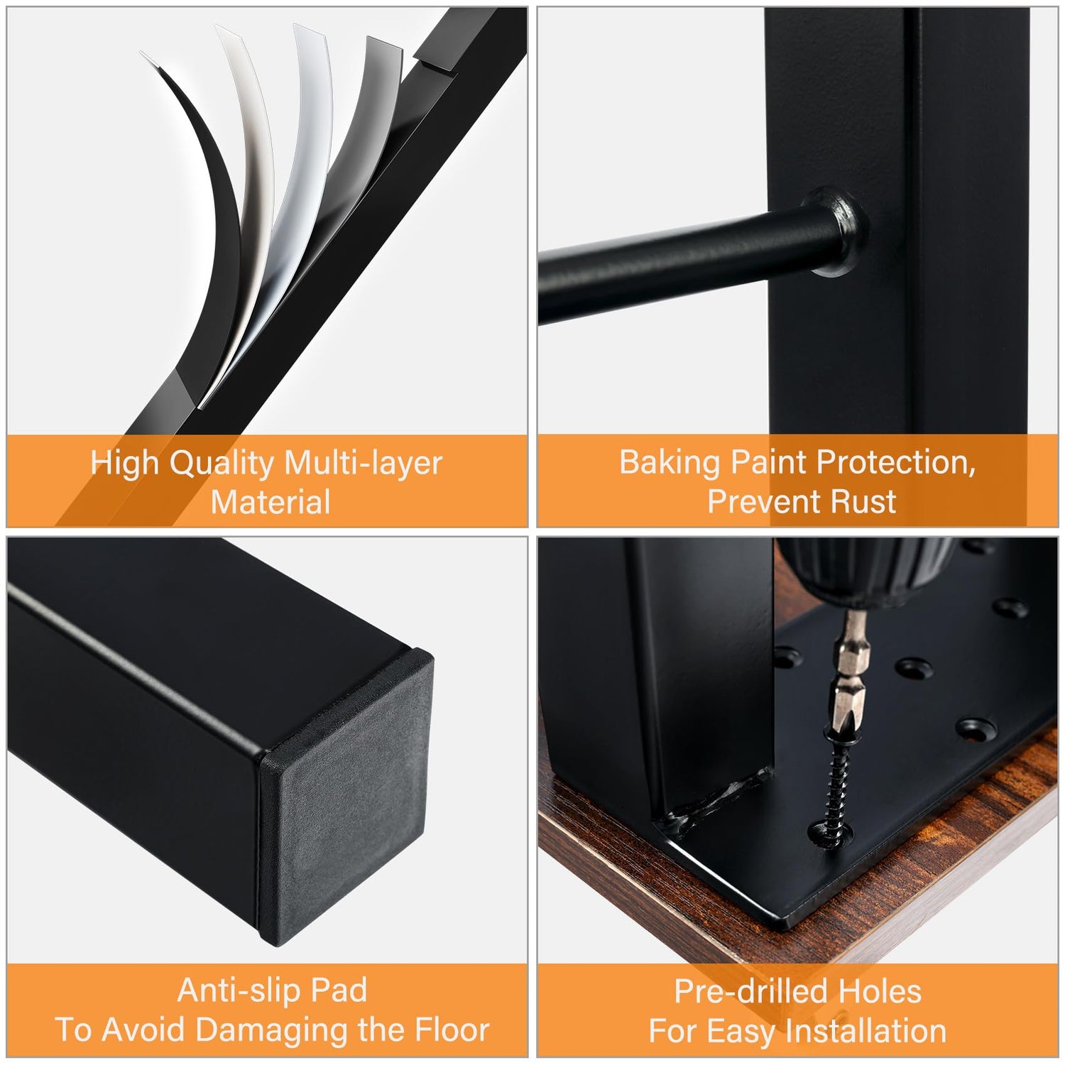 The set includes accessories such as 1.78" screws and foot mats, which are designed to protect your floors from damage and scratches, ensuring longevity for both your furniture and your flooring.