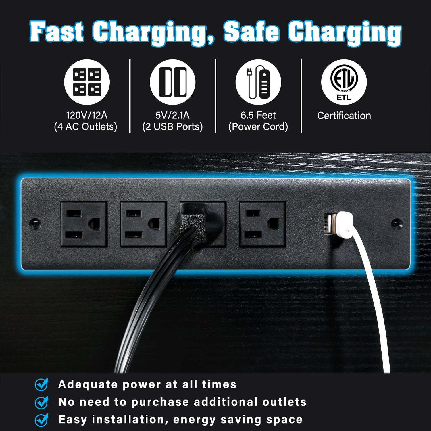 - Charging Station: A lot of electrical equipment is used when farming fish, such as heaters, filters, LED lights and so on. Don't worry, our fish tank can help you out. It has a built-in charging station with four three-hole AC power outlets and two USB ports, allowing you to easily charge your aquarium devices