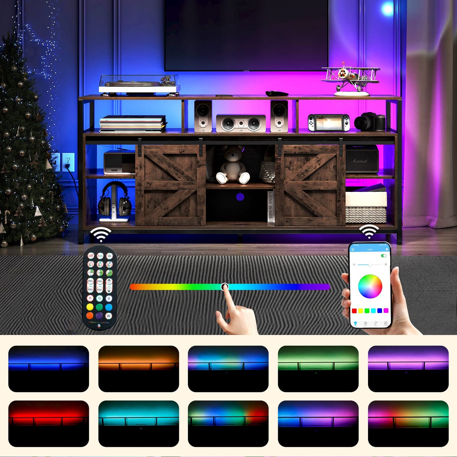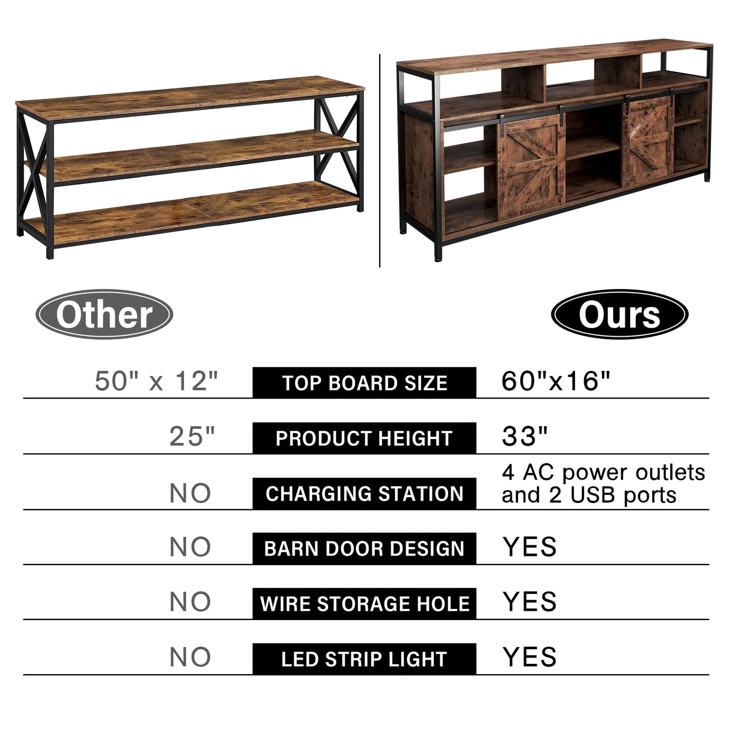 Details: Feature: TCHOMENY new upgraded extended 60 inch TV cabinet with charging station and LED light strip is the ideal furniture for your living room or entertainment room.