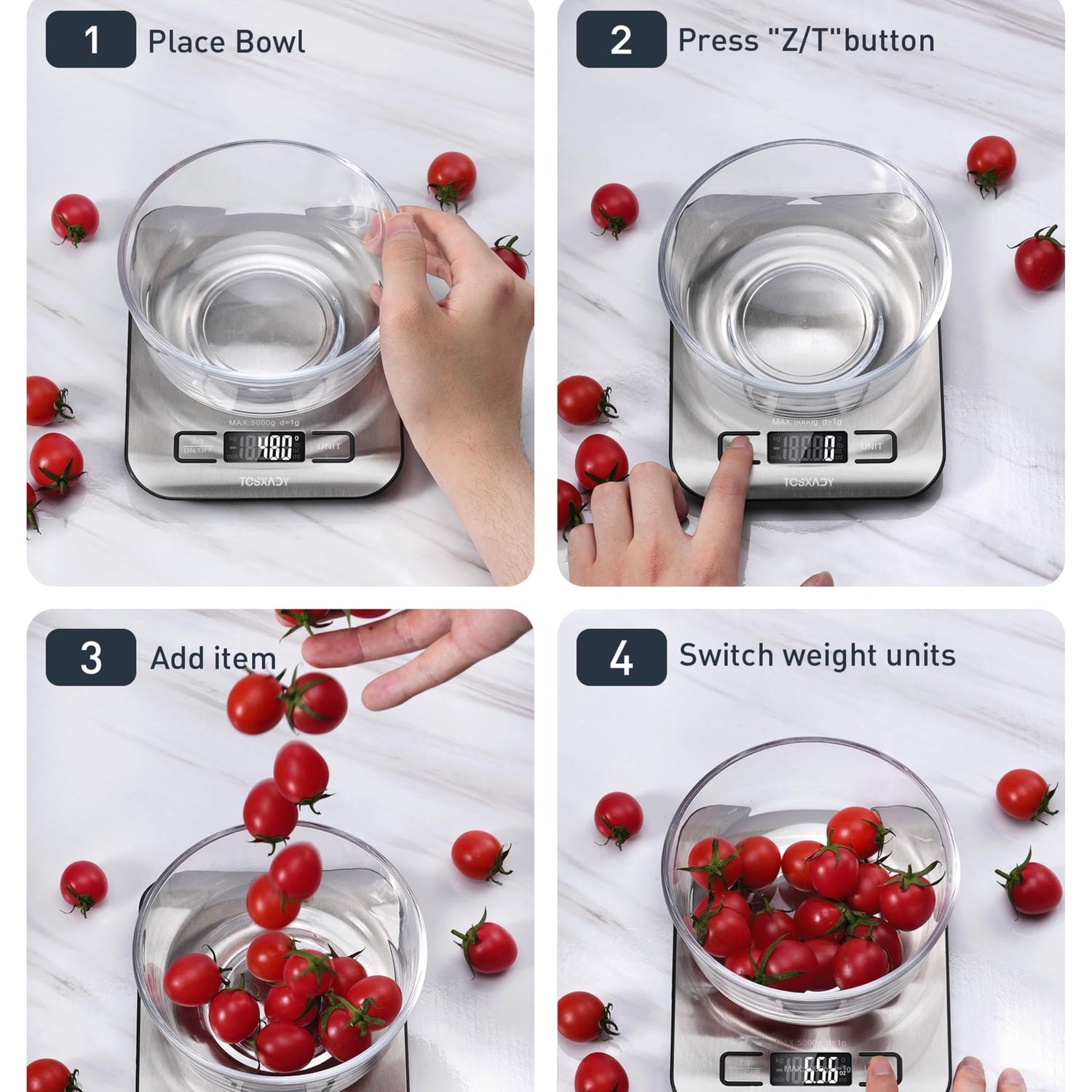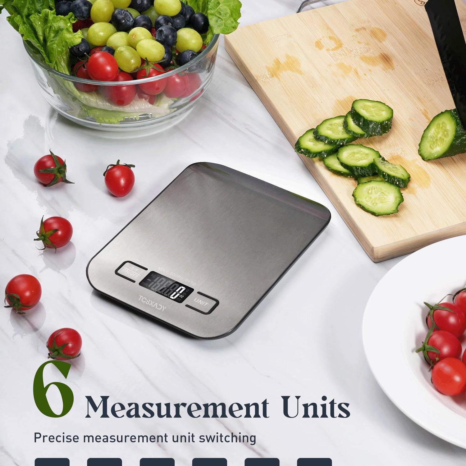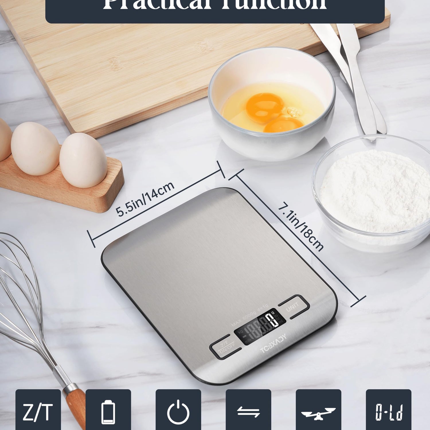 Tcsxady Food Scale, 11lb Digital Kitchen Scale with 6 Units LCD Display and Tare Function,Compact Design for Baking,Healthy Cooking,Meal Prep, 304 Stainless Steel