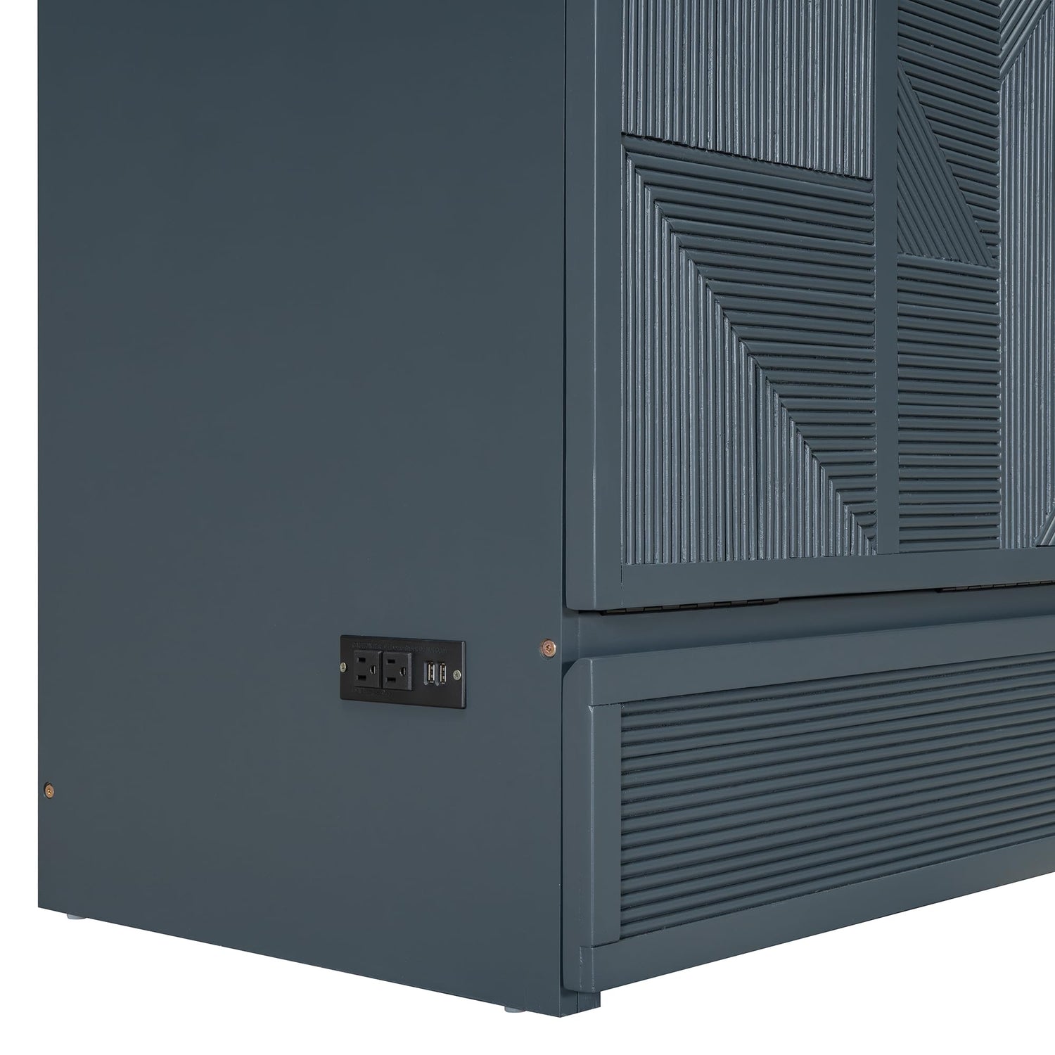 Tdewlye Queen Size Murphy Bed Wall Bed with Built-in USB Charging Ports & Drawer,Mobile Cabinet Murphy Chest Bed Wooden Space-Saving Folding Murphy Bed for Bedroom Guest Room (Gray-@LI)