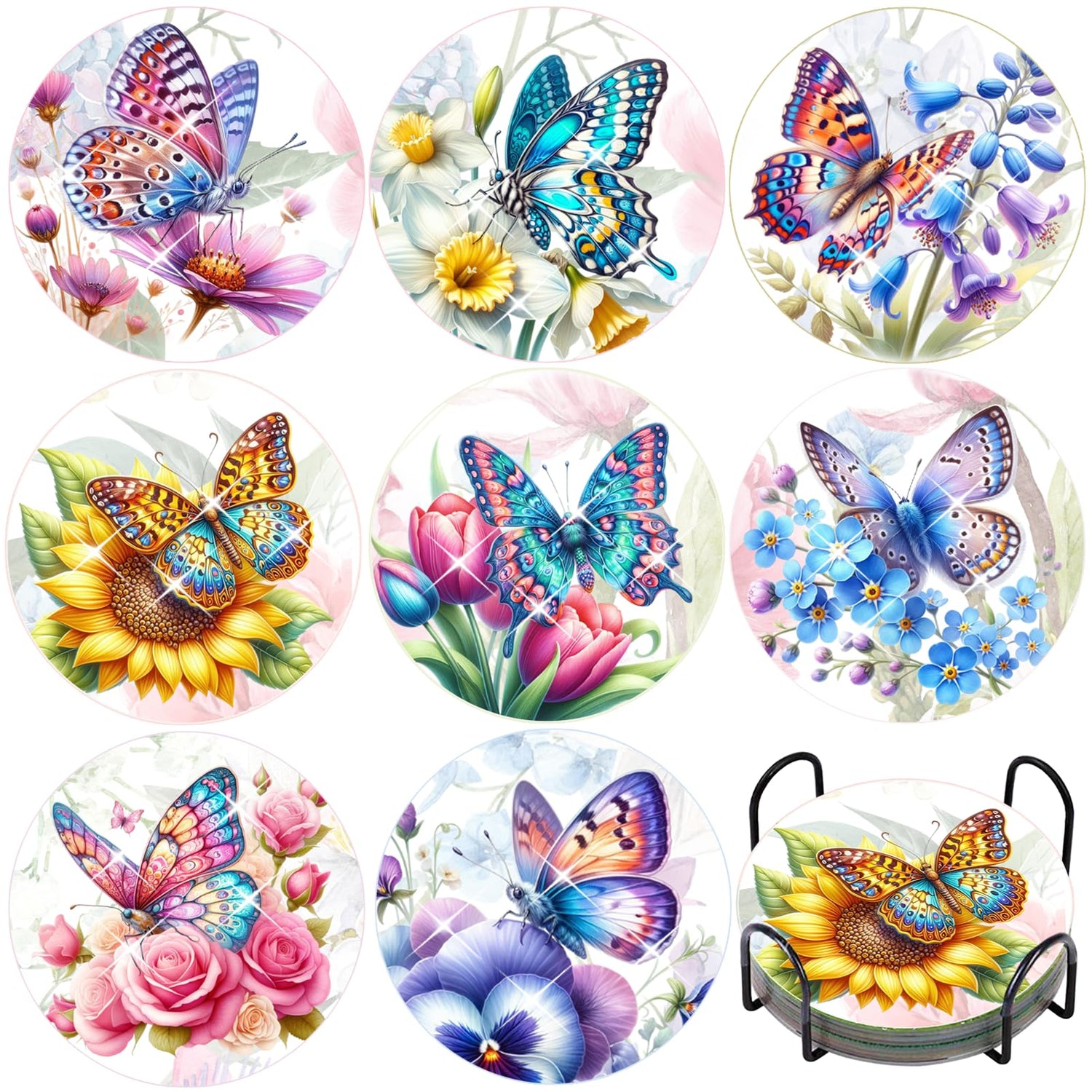 - Practical & Decorative: This coaster kit comes in 8 pieces, the 3.94 inches diameter diamond art coasters suit most cup sizes, and TDOOW diamond coasters have a variety of themes, such as sunflower, rose, flower, butterfly, beach, mandala, etc. These cute diamond paint coasters will be able to decorate your dining table, desk