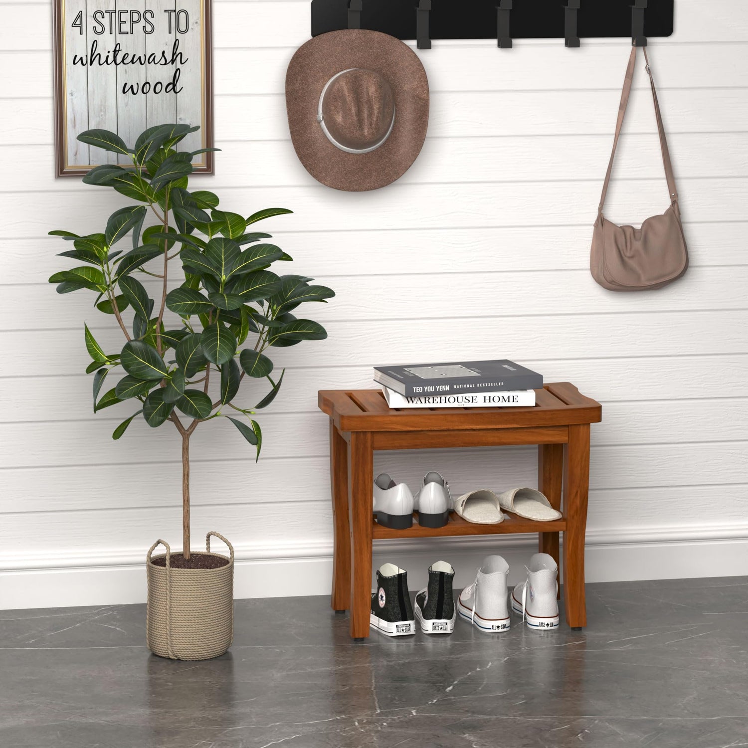 Teak Shower Bench Stool with Storage Shelf, Waterproof Shower Chair Spa Bath Seat, Shower Stool for Inside Shower, Bathroom Bench Seat for Adults Elderly Seniors for Indoor or Outdoor Use