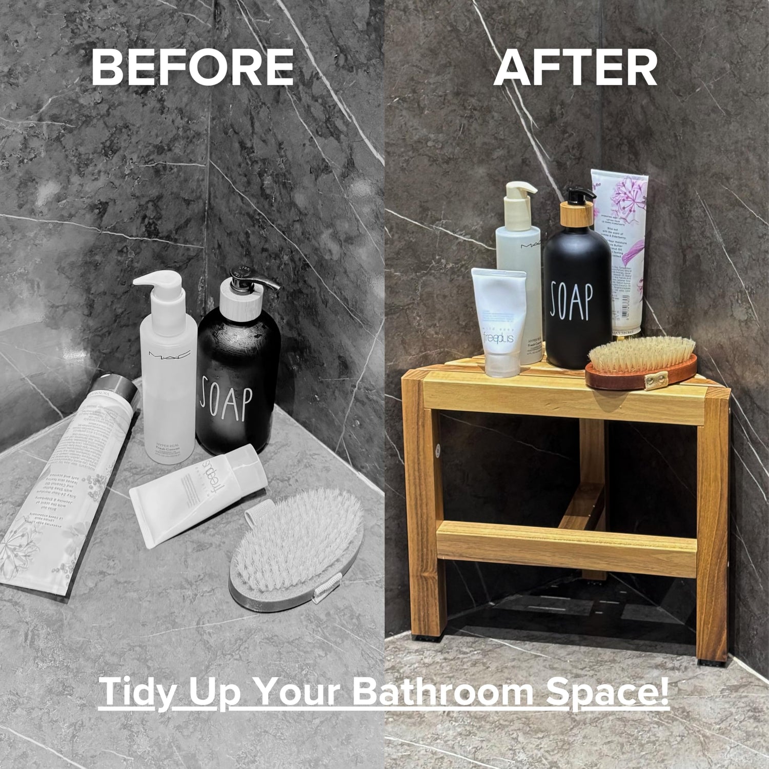 TEAKAURA Teak Shower Stool, Teak Shower Bench, 12'' Shower Foot Rest for Shaving Legs, Waterproof Teak Corner Shower Bench, Organizer Teak Stool, Corner Seat for Bathroom Livingroom