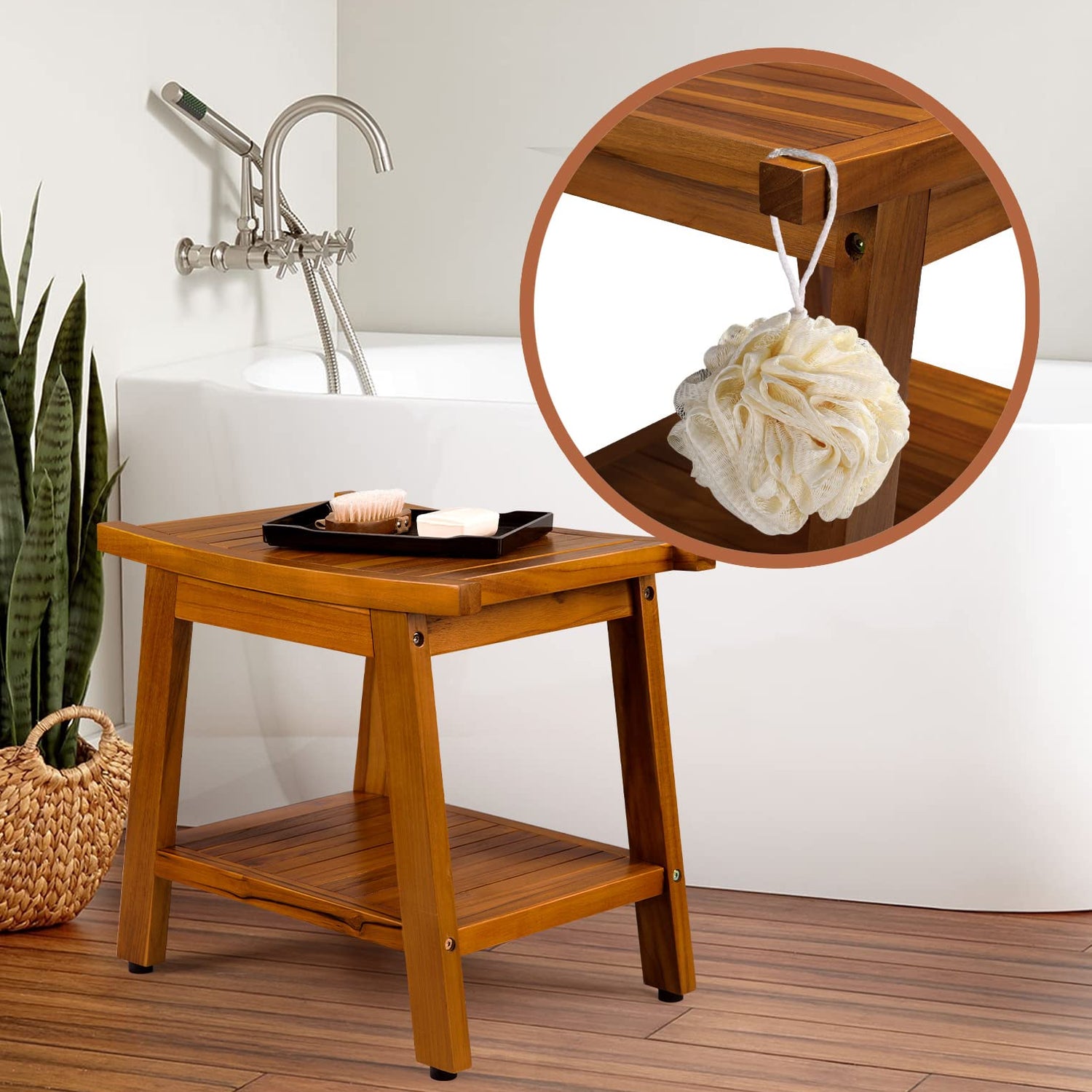 - 【Upgrade Your Classy Bathroom】: 21 X 14 X 18 inches.The bench is the suitable walk-in shower, safe for the elderly, and is a great addition to a new shower due to its optimal size and stability. Reddish brown wooden color and smooth finishing teak shower seat bench makes your bathroom classier than ever before.