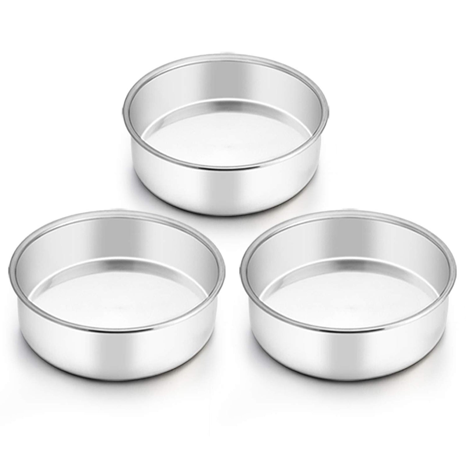 TeamFar 6 Inch Cake Pan, Round Cake Pan Tier Baking Pans Set Stainless Steel, Fit in Pot Pressure Cooker Air Fryer, Healthy & Toxic Free, Mirror Finish & Sturdy, Oven & Dishwasher Safe - Set of 3